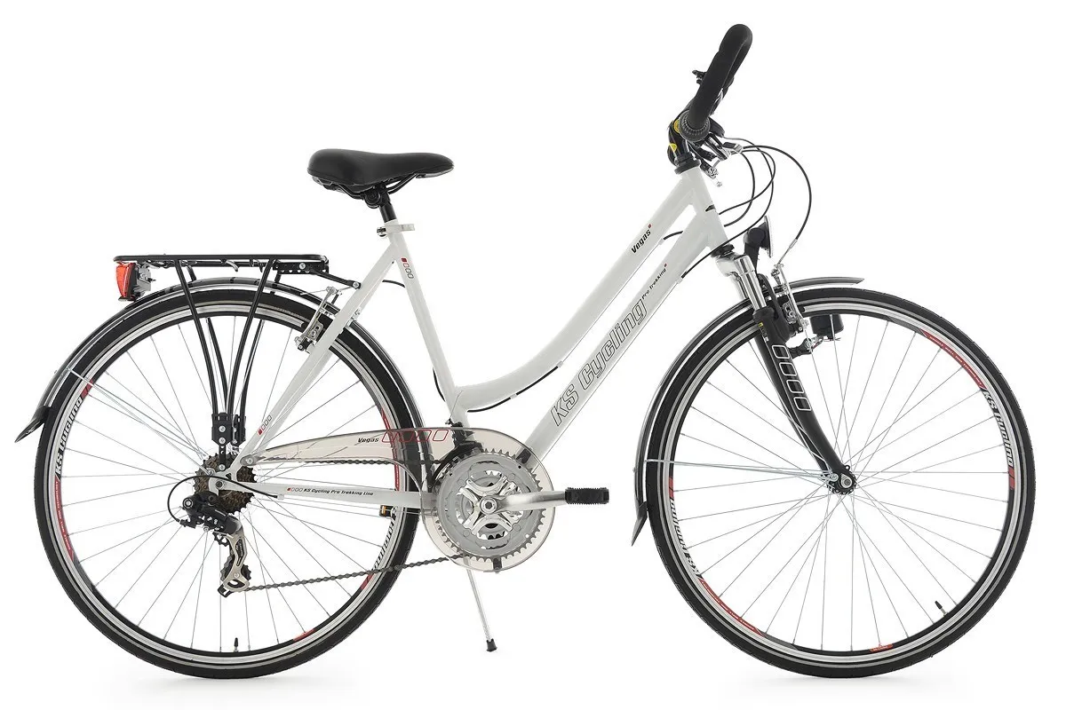 Niezależnie od tego, czy chcesz przejechać przez miasto, czy zaplanować dłuższą wycieczkę: 28-calowy damski rower trekkingowy VEGAS firmy KS Cycling zawsze idealnie się sprawdza! Rower ma białą ramę, która w połączeniu z czarnym widelcem ZOOM wygląda elegancko, a kierownica wielopozycyjna dopełnia całość. 21-stopniowa przerzutka SHIMANO sprawia iż pochyłości nie stanowią już żadnych problemów. Dzięki amortyzowanemu widelcowi, małe wyboje na trasie są łatwe do pokonania.