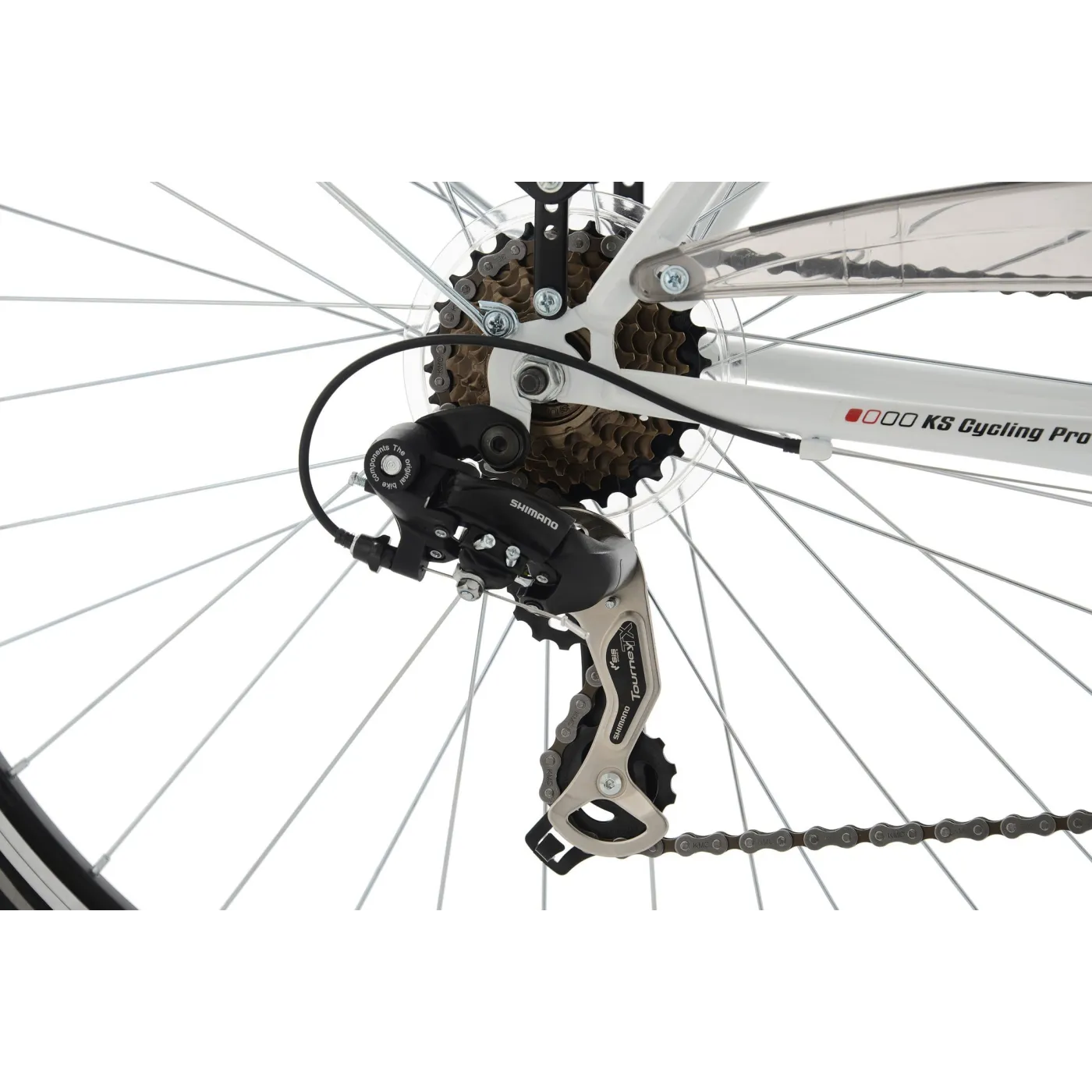 Niezależnie od tego, czy chcesz przejechać przez miasto, czy zaplanować dłuższą wycieczkę: 28-calowy damski rower trekkingowy VEGAS firmy KS Cycling zawsze idealnie się sprawdza! Rower ma białą ramę, która w połączeniu z czarnym widelcem ZOOM wygląda elegancko, a kierownica wielopozycyjna dopełnia całość. 21-stopniowa przerzutka SHIMANO sprawia iż pochyłości nie stanowią już żadnych problemów. Dzięki amortyzowanemu widelcowi, małe wyboje na trasie są łatwe do pokonania.
