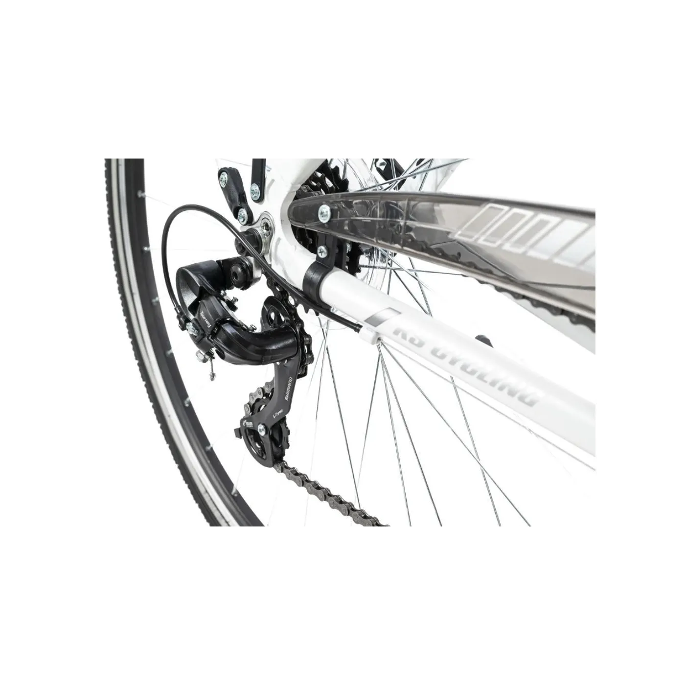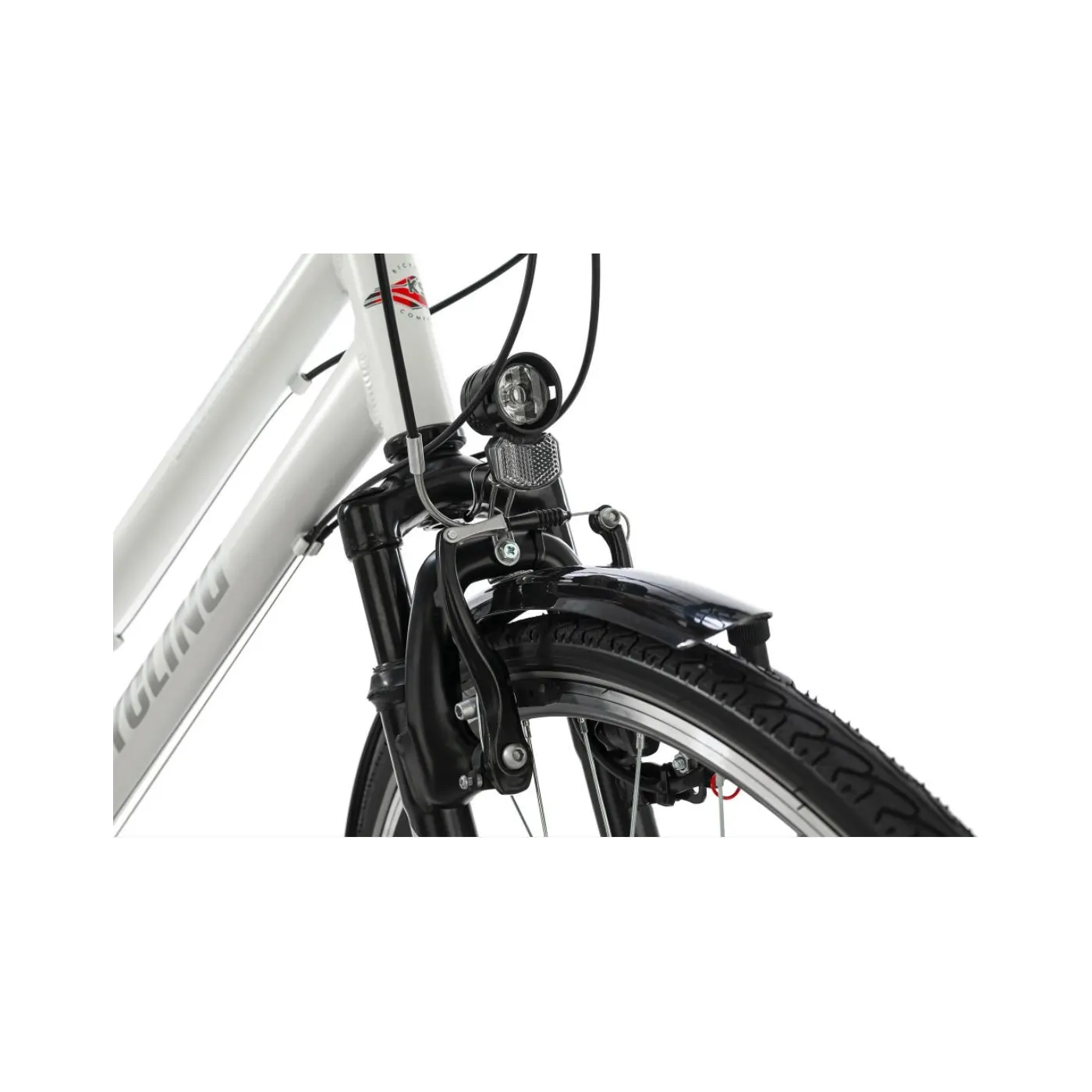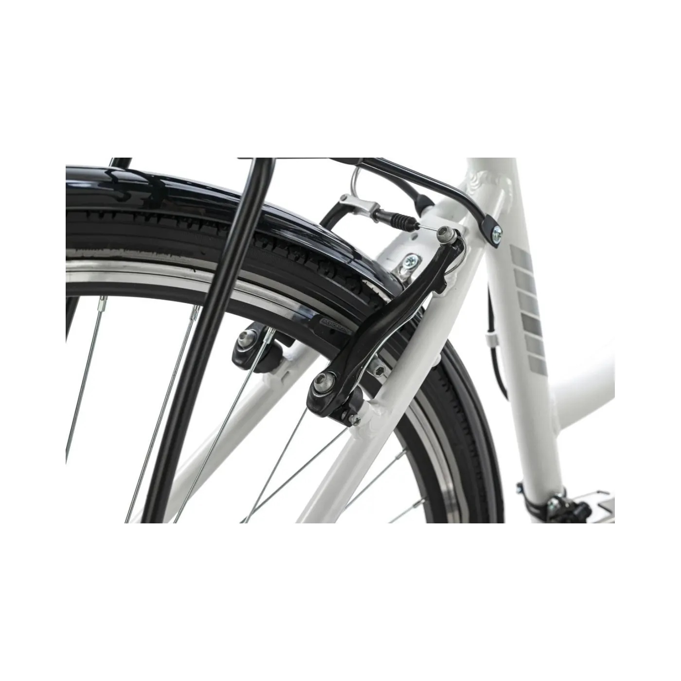 Towarzysz o wszechstronnych właściwościach: 28-calowy damski rower trekkingowy CANTERBURY radzi sobie z wieloma wyzwaniami, od szybkich wycieczek po mieście do dłuższych weekendowych wypadów. Biała aluminiowa rama połączona z subtelnymi czarnymi detalami oraz osłona łańcucha dopełniają styl i tworzą elegancki rower na każdą okazję.