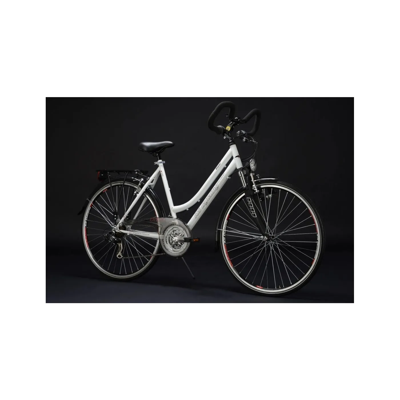 Rower trekkingowy Vegas to idealna propozycja dla każdej kobiety, która ceni lekkość jazdy w każdych warunkach. Na całość pozytywnych wrażeń składa się wiele czynników technicznych. Dobra specyfikacja techniczna idąca z pięknym wykonaniem wyróżnia ten model. Warto spojrzeć na 28-calowe koła o minimalnym oporze toczenia i specjalnie wyprofilowanym szerokim siodełku. Grzechem byłoby nie wspomnieć o przerzutkach SHIMANO o 21 przełożeniach, amortyzowanym widelcu oraz o zestawie oświetlenia.