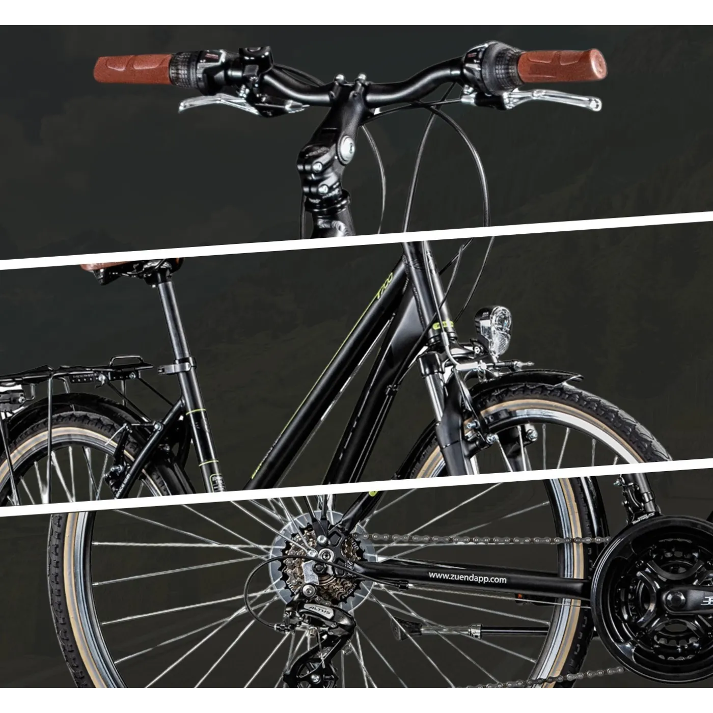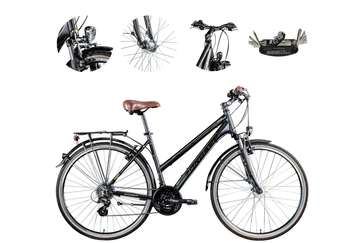 ✔️ Rower jeździ na łatwych w prowadzeniu oponach o wymiarach 700c x 40c, których profil pozwala na dużą prędkość na asfalcie i nadal zapewnia wystarczającą przyczepność na zakrętach. Zündapp T700 ma szeroką gamę funkcji, dzięki czemu możesz natychmiast rozpocząć jazdę i nie musisz kupować dodatkowych akcesoriów.