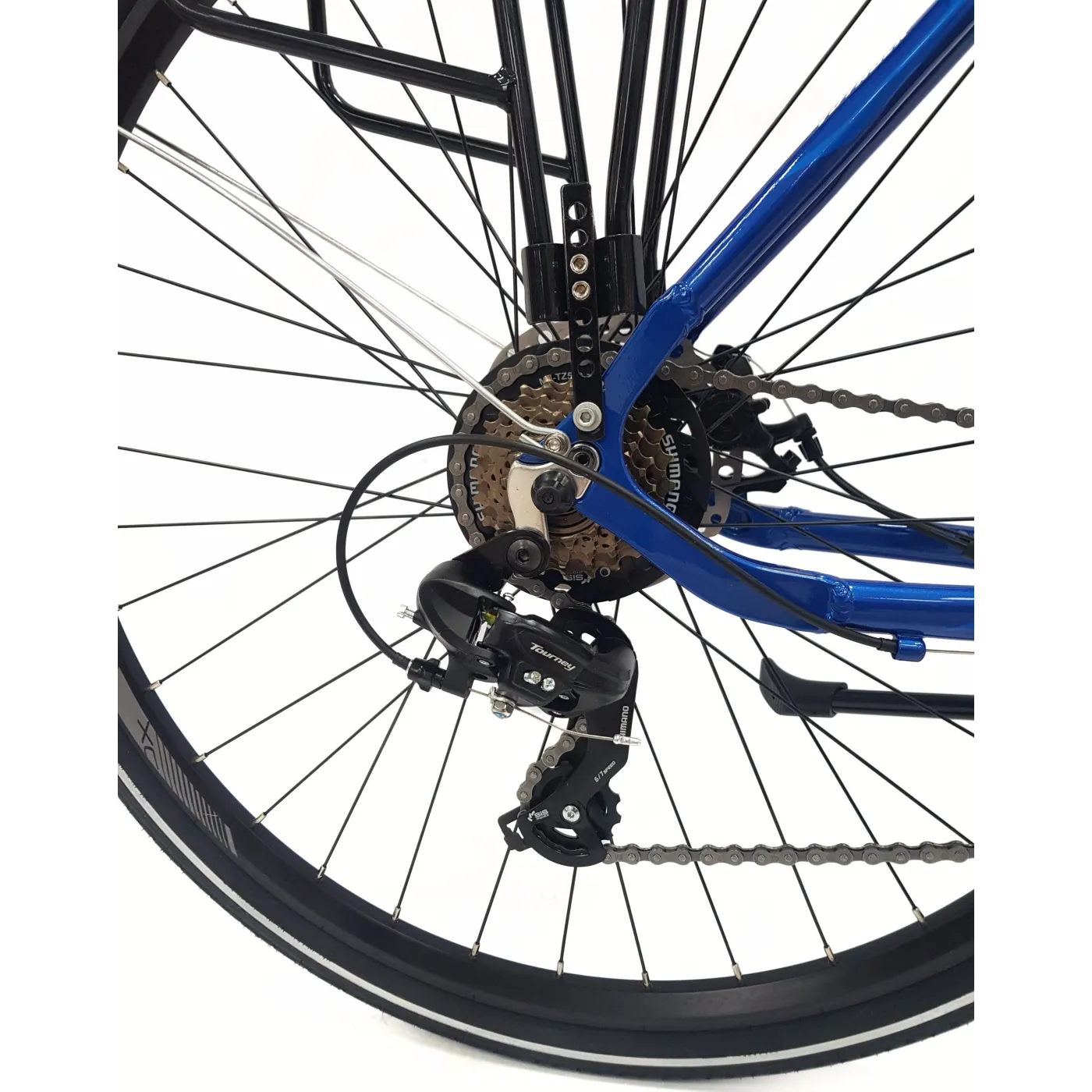 🔧 Koła o średnicy 28 cali i opony 700 x 38C gwarantują stabilność i pewność na każdym podłożu, zarówno w mieście, jak i na szlakach turystycznych. Dodatkowo rower wyposażony jest w bagażnik, co jest wygodne podczas dłuższych tras, oraz w dzwonek i światła, co zwiększa widoczność i bezpieczeństwo na drodze.