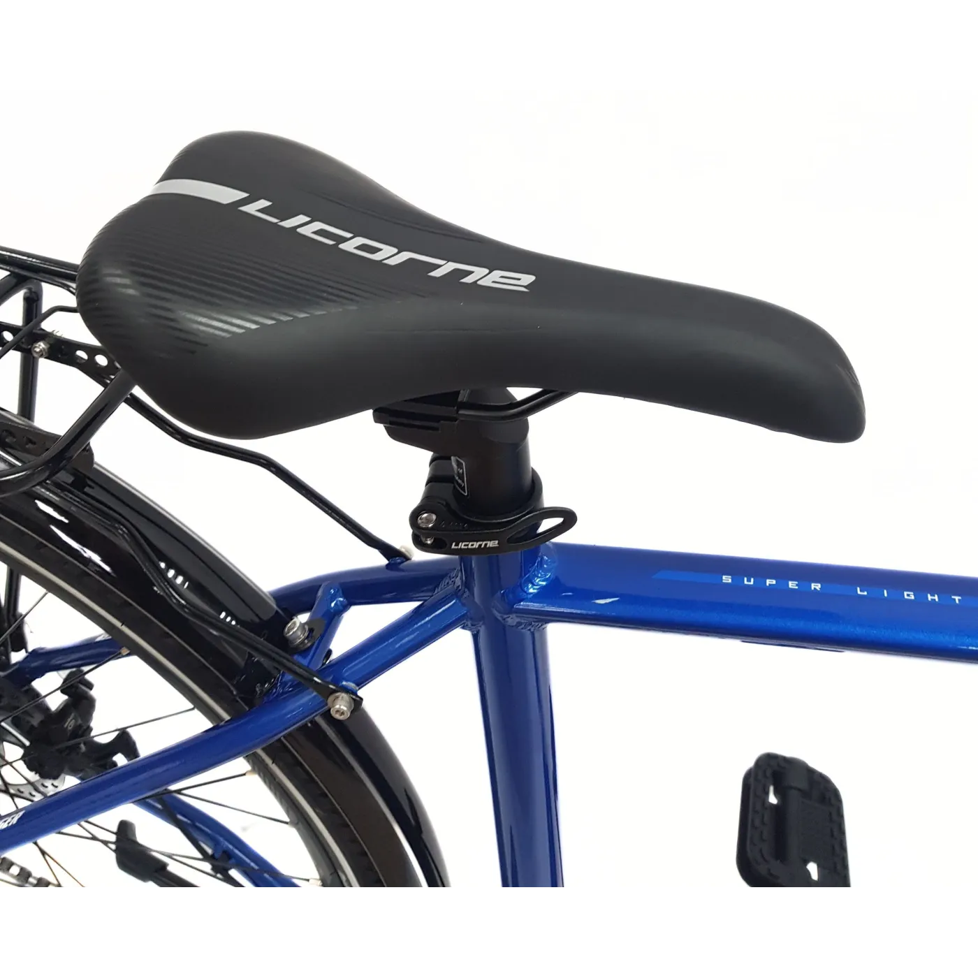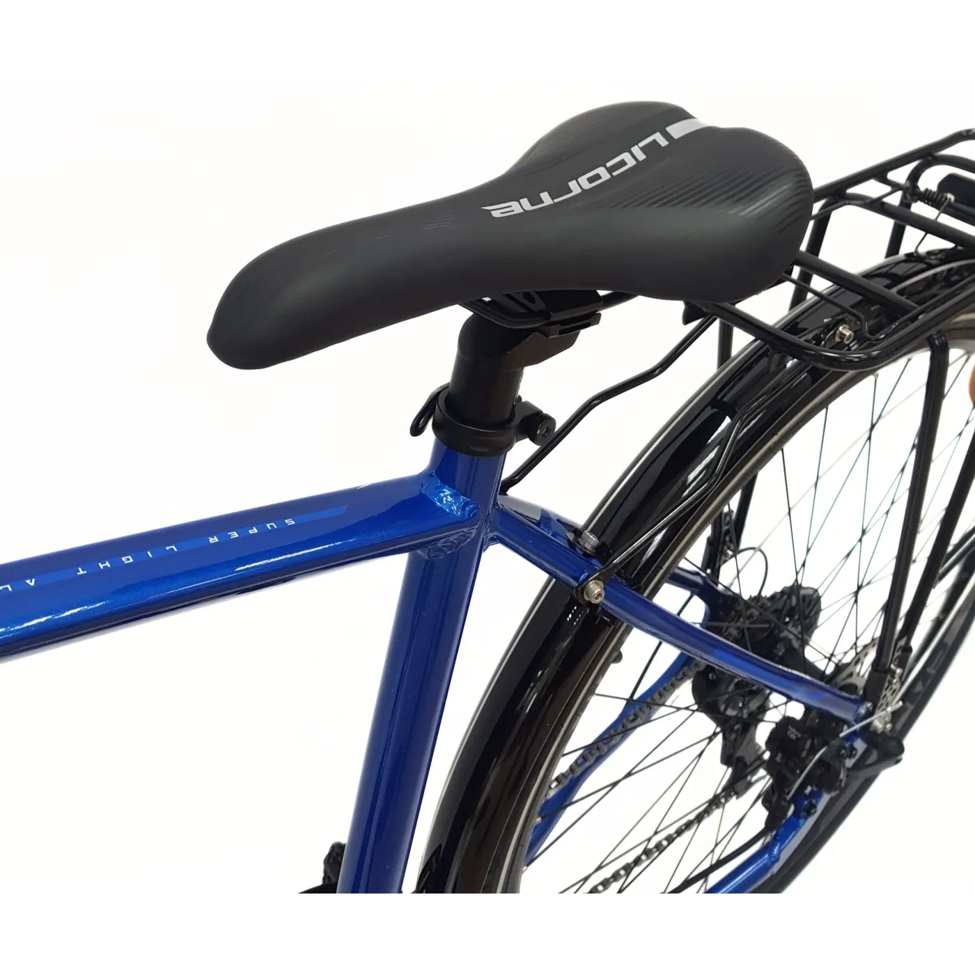 ✨ Licorne Bike Voyager to niezawodny sposób poruszania się zarówno po mieście, jak i poza jego granicami. Posiada aluminiową ramę, co sprawia, że jest lekki, a jednocześnie wytrzymały i odporny na warunki atmosferyczne. Dzięki hamulcom tarczowym, których działanie jest skuteczne nawet podczas deszczu czy błota, jazda jest bezpieczna i pewna.