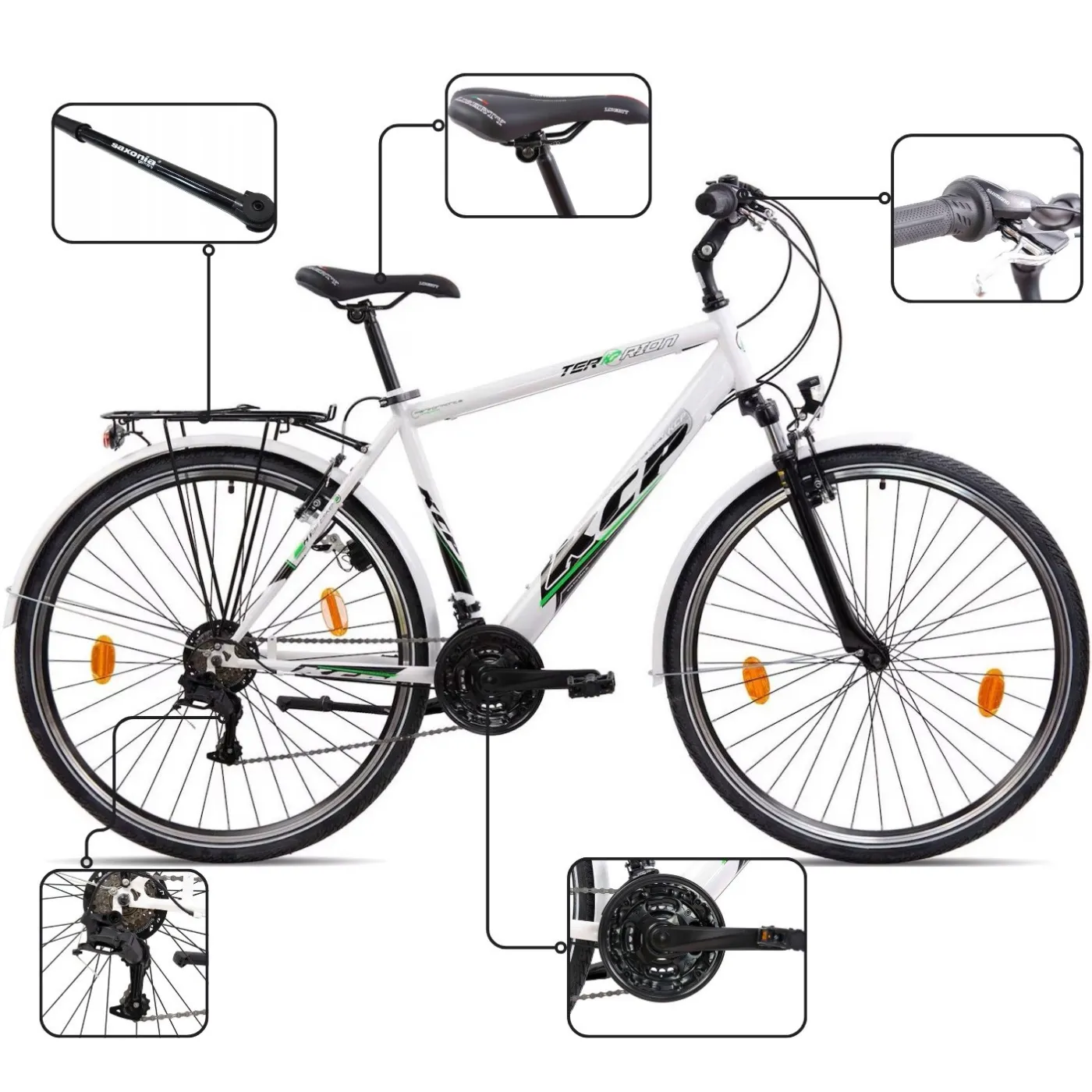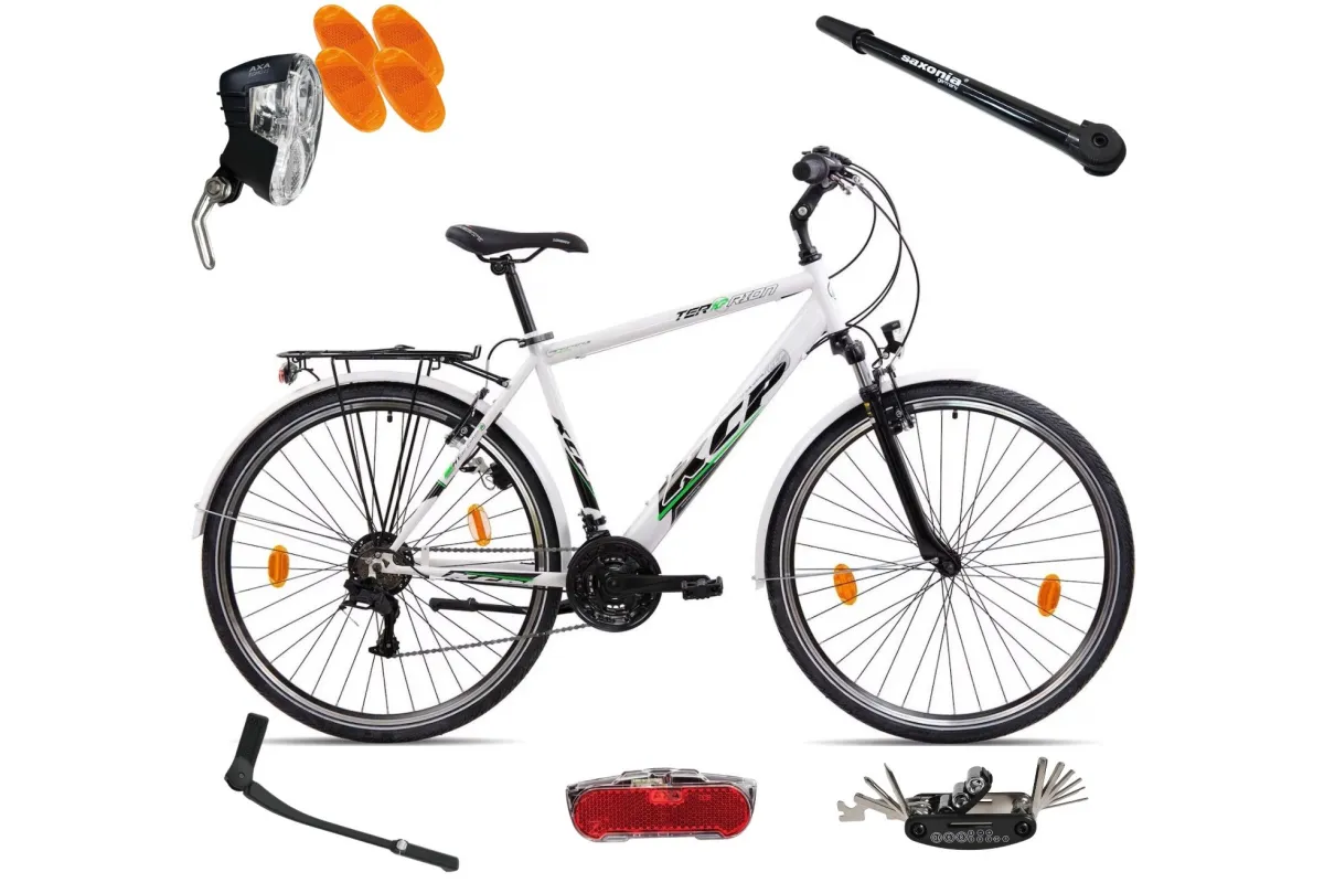 ➯ Bogate wyposażenie w standardzie: błotniki, dzwonek, bagażnik, oświetlenie na dynamo, odblaski, pompka.