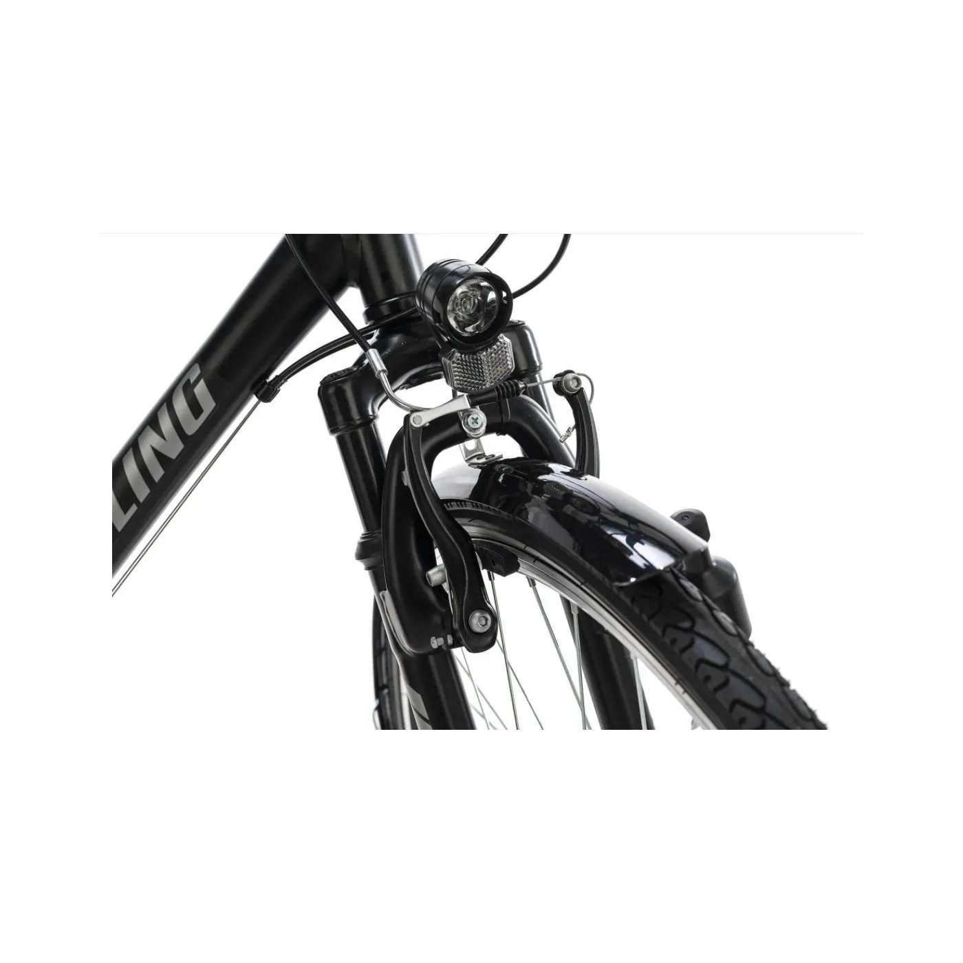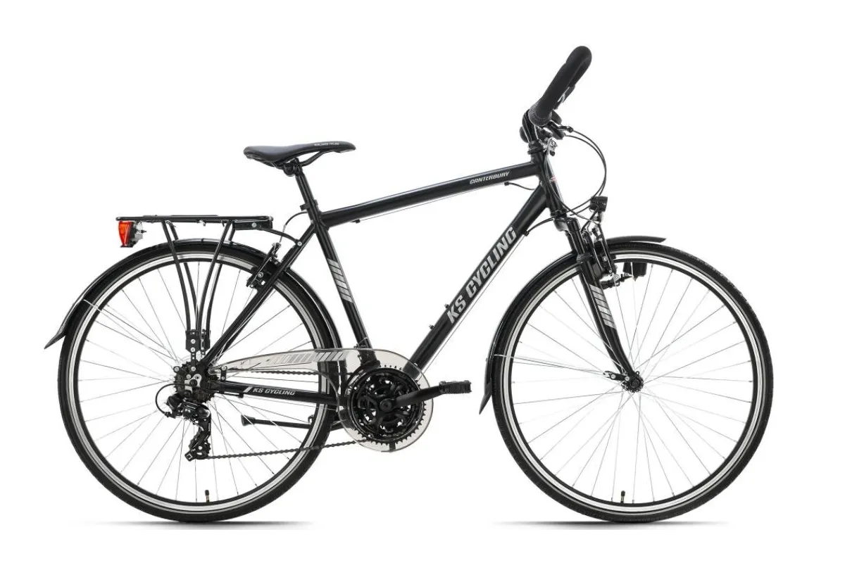 Elastyczny, sportowy towarzysz o wszechstronnych właściwościach: 28-calowy męski rower trekkingowy CANTERBURY firmy KS Cycling stawia czoła wielu różnym wyzwaniom, od szybkich przejażdżek po mieście po dłuższe treningi i długie wycieczki! Czarna aluminiowa rama jest połączona z subtelnymi szarymi detalami, przezroczysta osłona łańcucha i wielopozycyjna kierownica dopełniają design. Dzięki 21-biegowej przekładni możesz dostosować tempo jazdy do warunków. Wielopozycyjna kierownica umożliwia poruszanie rękami dla większego komfortu. Dzięki amortyzowanemu widelcowi małe wyboje na trasie prawie nie istnieją dzięki systemowi oświetlenia zatwierdzonemu przez StVZO, zawsze jesteś bezpieczny na drodze, nawet w ciemności.