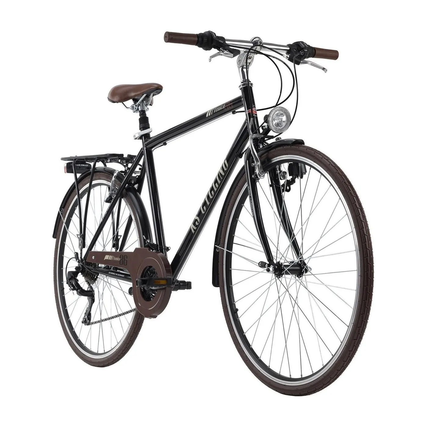 Niezależnie od tego, czy chcesz wygodnie jeździć po mieście, czy planujesz dłuższą wycieczkę: 28-calowy trekkingowy męski rower VENICE firmy KS Cycling jest zawsze z Tobą! Rower ma czarną ramę z eleganckimi detalami. Zawiera również opony, osłonę łańcucha, siodełko i uchwyty w tym samym kolorze, które dopełniają wzór.
