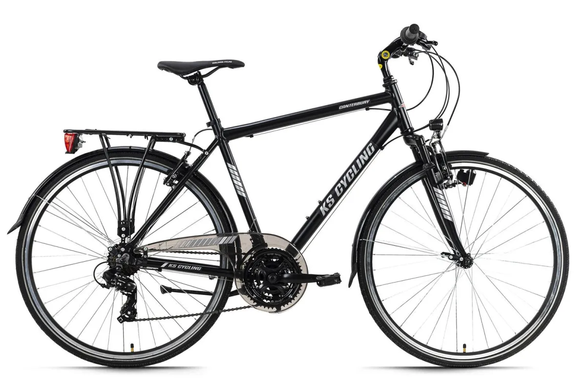 Niezależnie od tego, czy chcesz wygodnie jeździć po mieście, czy planujesz dłuższą wycieczkę: 28-calowy trekkingowy męski rower Canterbury firmy KS Cycling jest zawsze z Tobą! Rower ma czarną ramę z eleganckimi detalami.