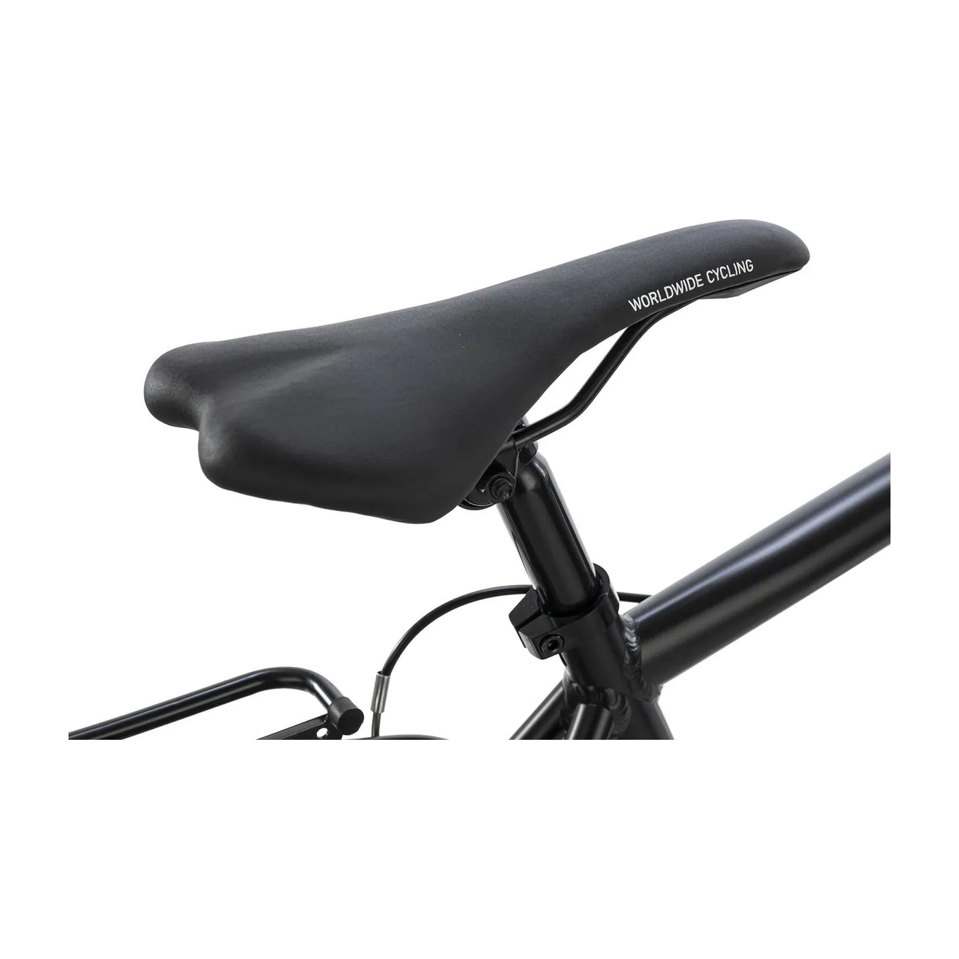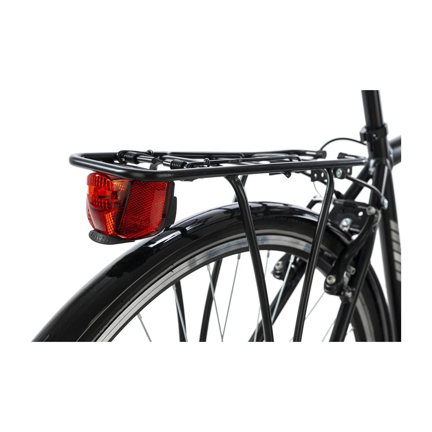 Dzięki 21-biegowej przekładni Shimano nie pocisz się. Wielopozycyjna kierownica umożliwia wykonywanie dłoni i większy komfort jazdy. Dzięki amortyzowanemu widelcowi nierówności na trasie są prawie nieodczuwalne, dzięki oświetleniu dopuszczonemu do ruchu drogowego StVZO możesz bezpiecznie poruszać się w ciemności. Za bezpieczeństwo odpowiadają także hamulce typu V-brakes.