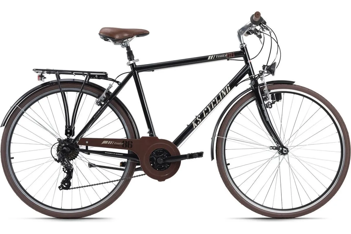 Niezależnie od tego, czy chcesz wygodnie jeździć po mieście, czy planujesz dłuższą wycieczkę: 28-calowy trekkingowy męski rower VENICE firmy KS Cycling jest zawsze z Tobą! Rower ma czarną ramę z eleganckimi detalami. Zawiera również opony, osłonę łańcucha, siodełko i uchwyty w tym samym kolorze, które dopełniają wzór.