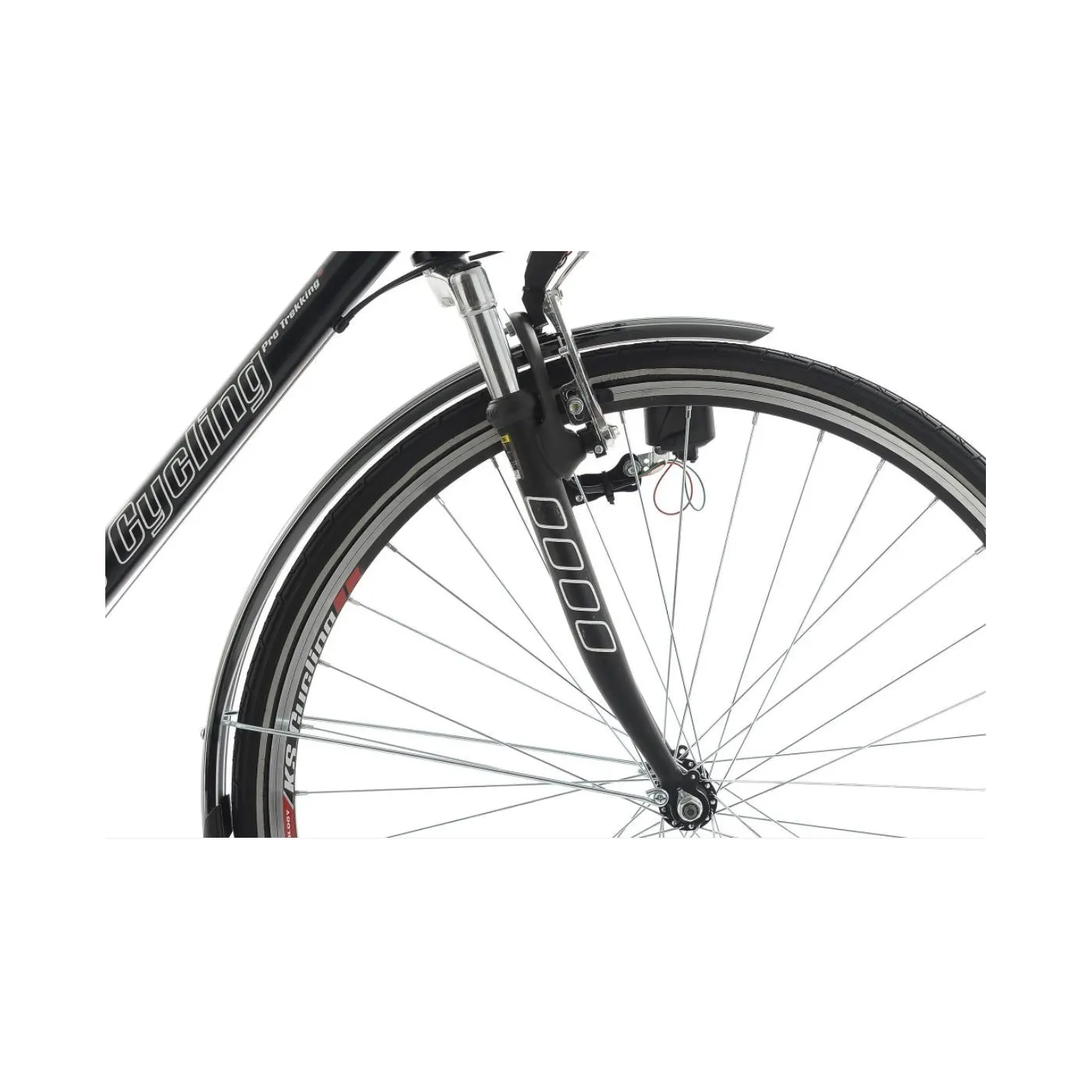 Rower ma czarną ramę z eleganckimi białymi detalami. Przezroczysta osłona łańcucha i wielopozycyjna kierownica jest idealnym dopełnieniem kompozycji projektu. Żadne wzniesienia nie będą stanowić już żadnych problemów dzięki zamontowanym przerzutką SHIMANO z 21 biegami. Wielopozycyjna kierownica umożliwia poruszanie rękami, co również umożliwia zmienianie pozycji siedzącej. Dzięki widelcowi amortyzowanemu małe nierówności na trasie są prawie niezauważalne, więc każda jazda na rowerze trekkingowym jest przyjemna dla przyjemności.