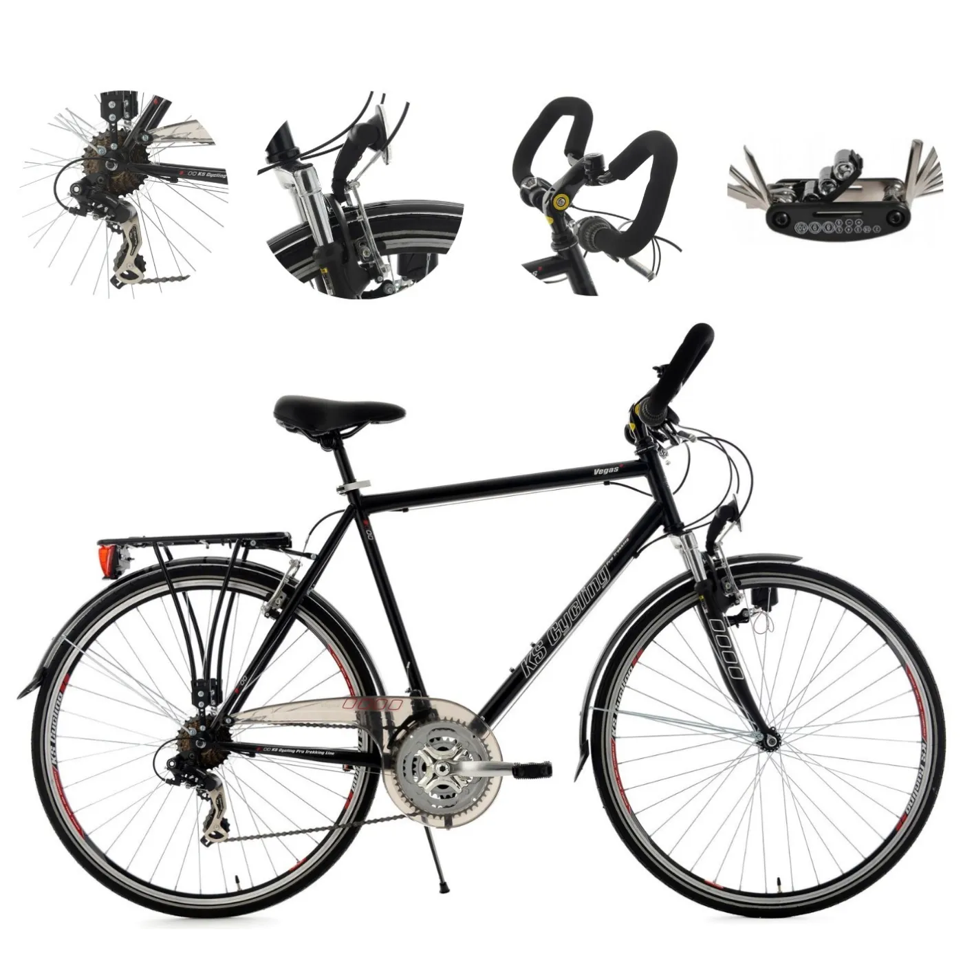 🔩🚵♂️ Ks Cycling Vegas posiada także koła 28" z oponami o rozmiarze 700x35c (37-622), które zapewniają stabilność i komfort jazdy. Design w czarnym kolorze nadaje mu elegancki wygląd, a dodatkowe elementy takie jak błotniki, osłona łańcucha, bagażnik czy oświetlenie dynamo sprawiają, że jest gotowy do każdej przygody.