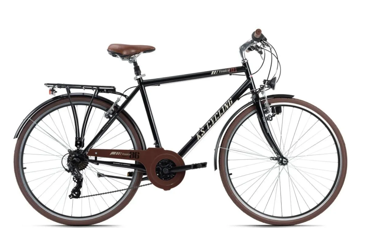 Niezależnie od tego, czy chcesz wygodnie jeździć po mieście, czy planujesz dłuższą wycieczkę: 28-calowy trekkingowy męski rower VENICE firmy KS Cycling jest zawsze z Tobą! Rower ma czarną ramę z eleganckimi detalami. Zawiera również opony, osłonę łańcucha, siodełko i uchwyty w tym samym kolorze, które dopełniają wzór.