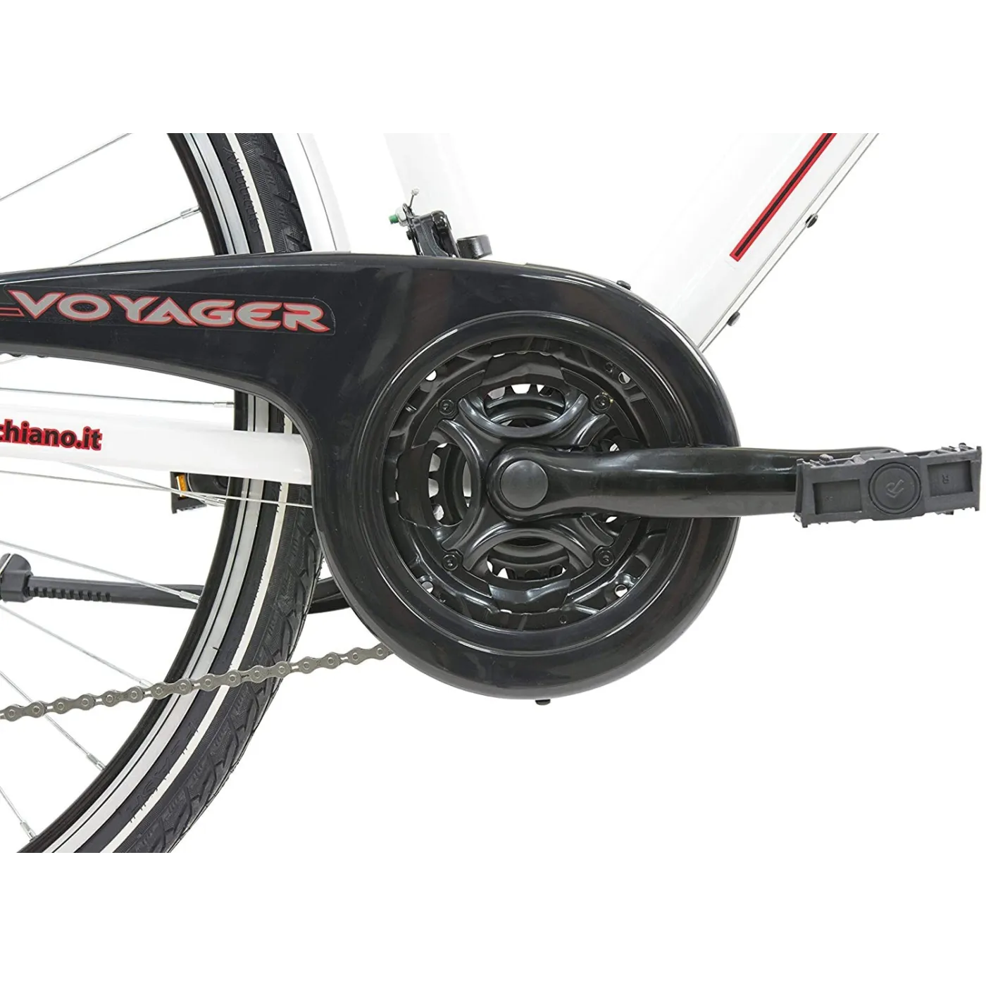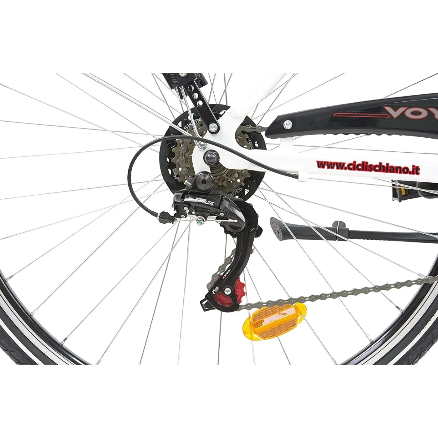 Skrzynia biegów dla F.lli Schiano Voyager jest w całości Shimano. Rower posiada manetki RevoShift SL-RS36 3x6, aby zapewnić płynną jazdę po mieście. Model Voyager jest wyposażony w amortyzowany widelec, dzięki temu rower jest szybki w mieście i na drodze, a także może wygodnie przewozić Cię na lekkich trasach terenowych.
