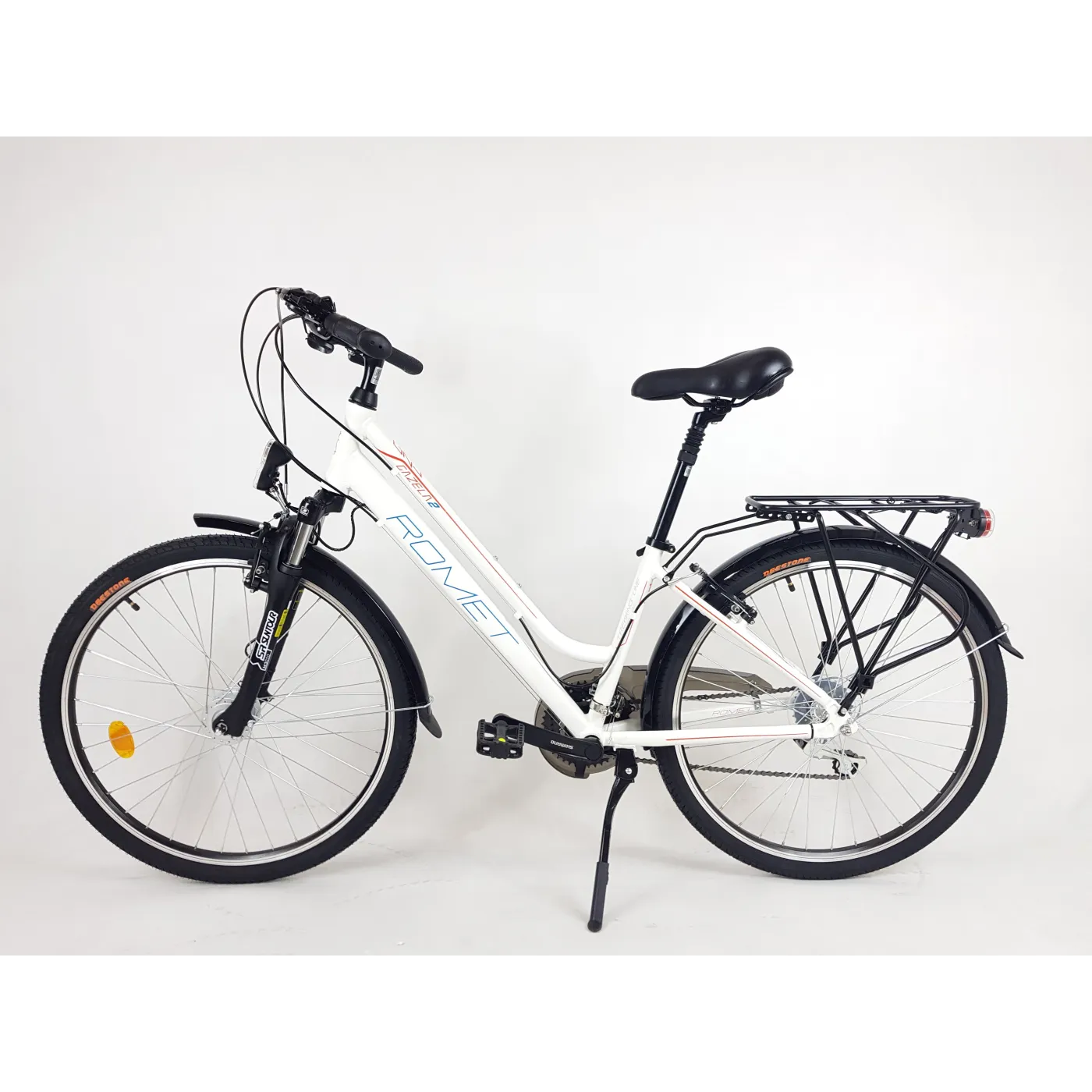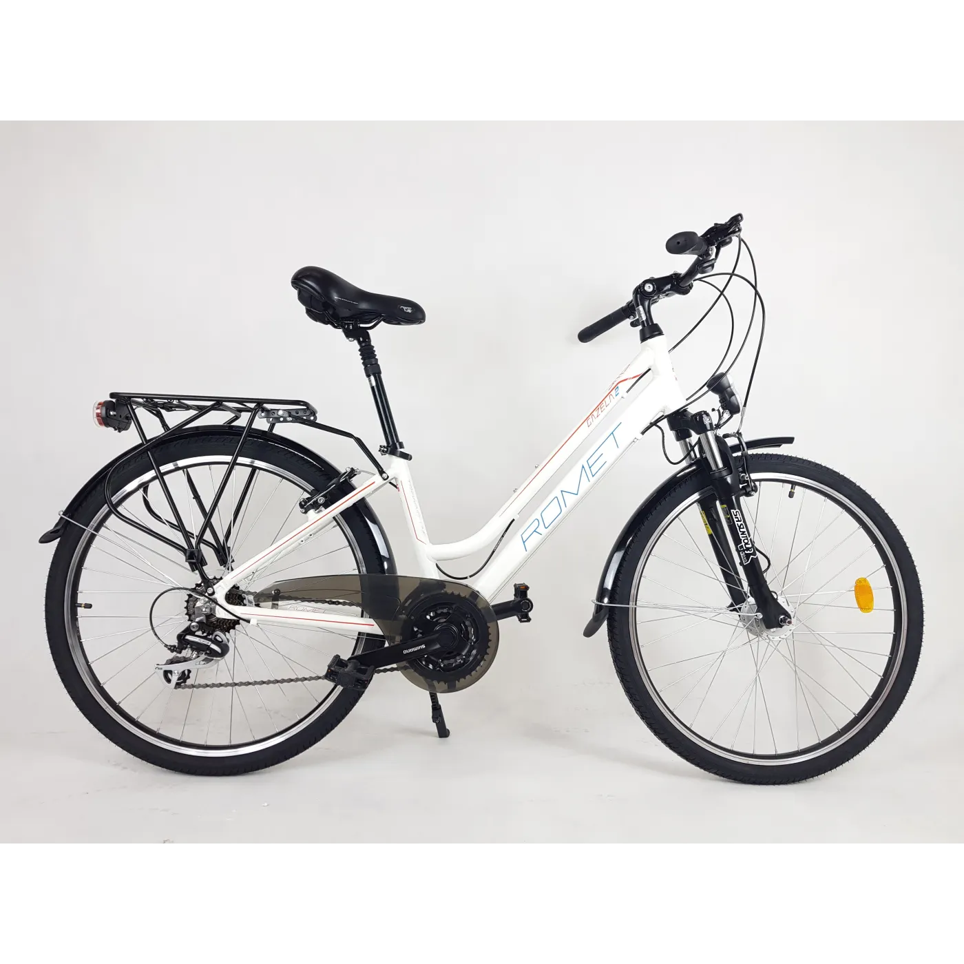 Doskonały rower wycieczkowy oparty na aluminiowej ramie i kołach w rozmiarze 26". Posiada osłonkę łańcucha aby nie pobrudzić swoich ulubionych spodni, jest tu także tylny bagażnik do przewozu torebki albo zakupów. Zestaw oświetlenia pozwoli na jazdę po zmroku, a podpórka na wygodne oparcie roweru.