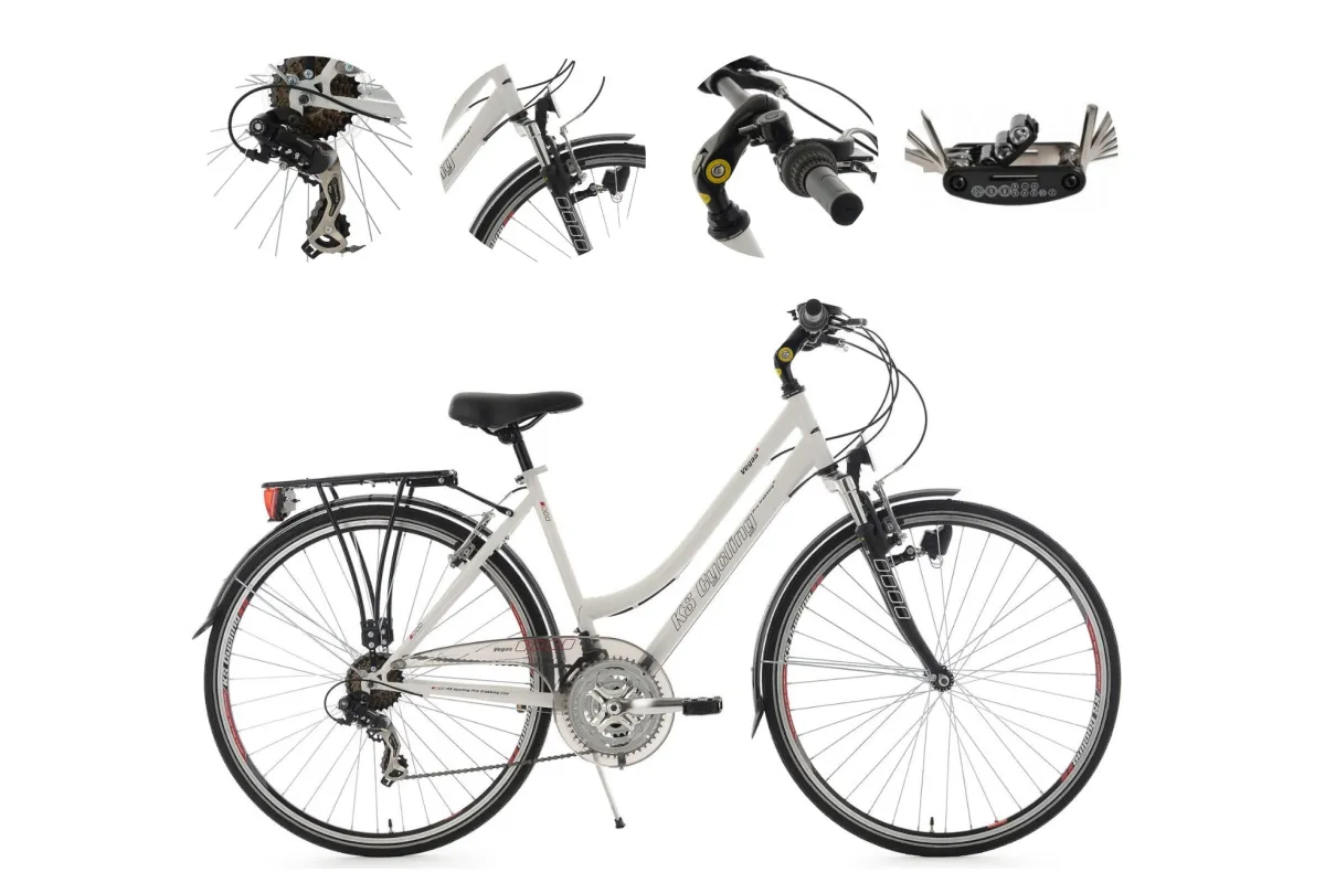 🚴♀️ Damski rower trekkingowy KS Cycling Vegas to idealna propozycja dla kobiet lubiących aktywnie spędzać czas na świeżym powietrzu. Wyposażony w stalową ramę, ważącą zaledwie 18 kg, rower gwarantuje stabilność i wygodę podczas jazdy.