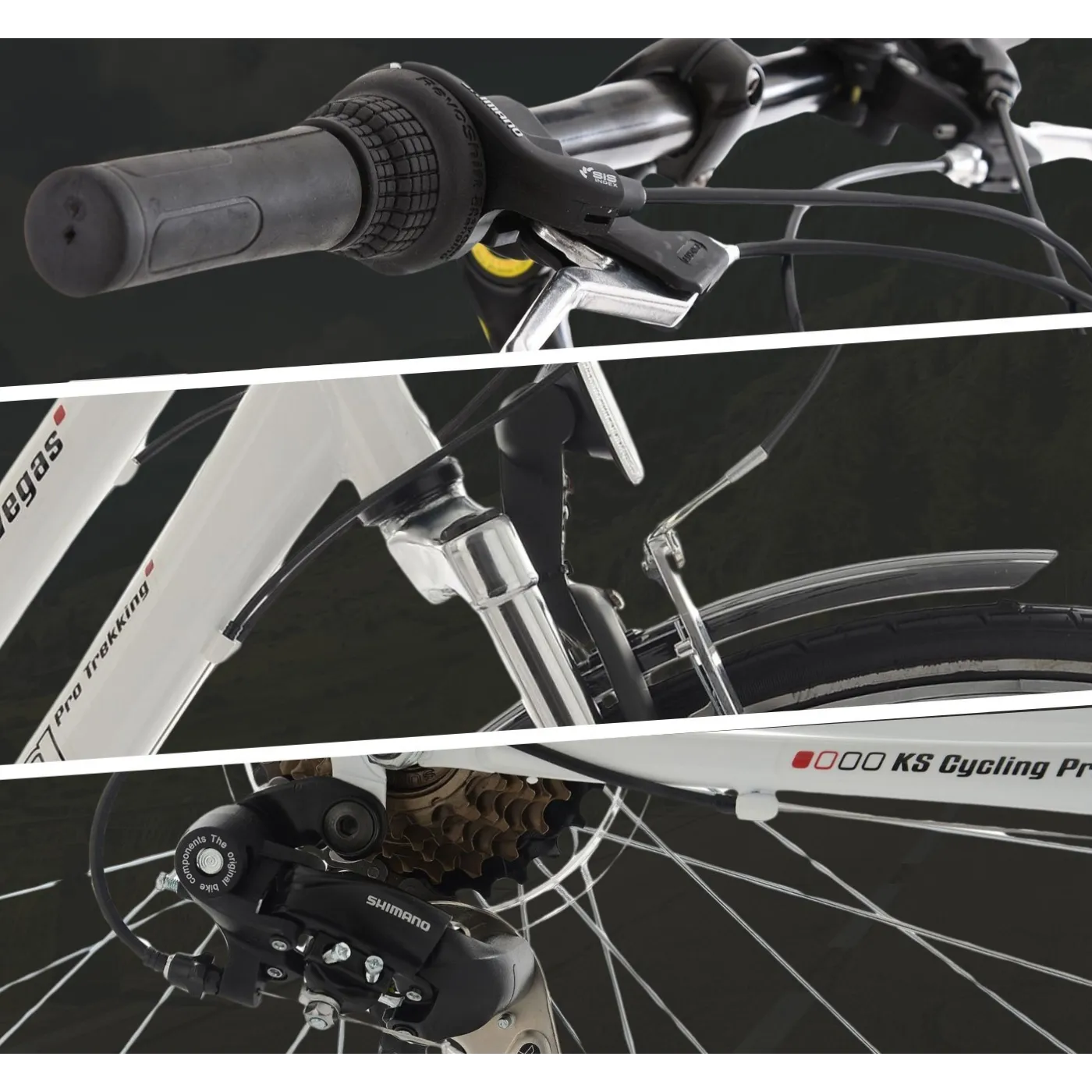 🔧 Rower posiada hamulce szczękowe v-brake z przodu i z tyłu, zapewniające skuteczne zatrzymywanie się nawet w trudniejszych warunkach. Dzięki 21-biegowej przerzutce Shimano Tourney z przodu i z tyłu oraz manetce obrotowej Shimano RevoShift, każda trasa staje się łatwiejsza do pokonania.