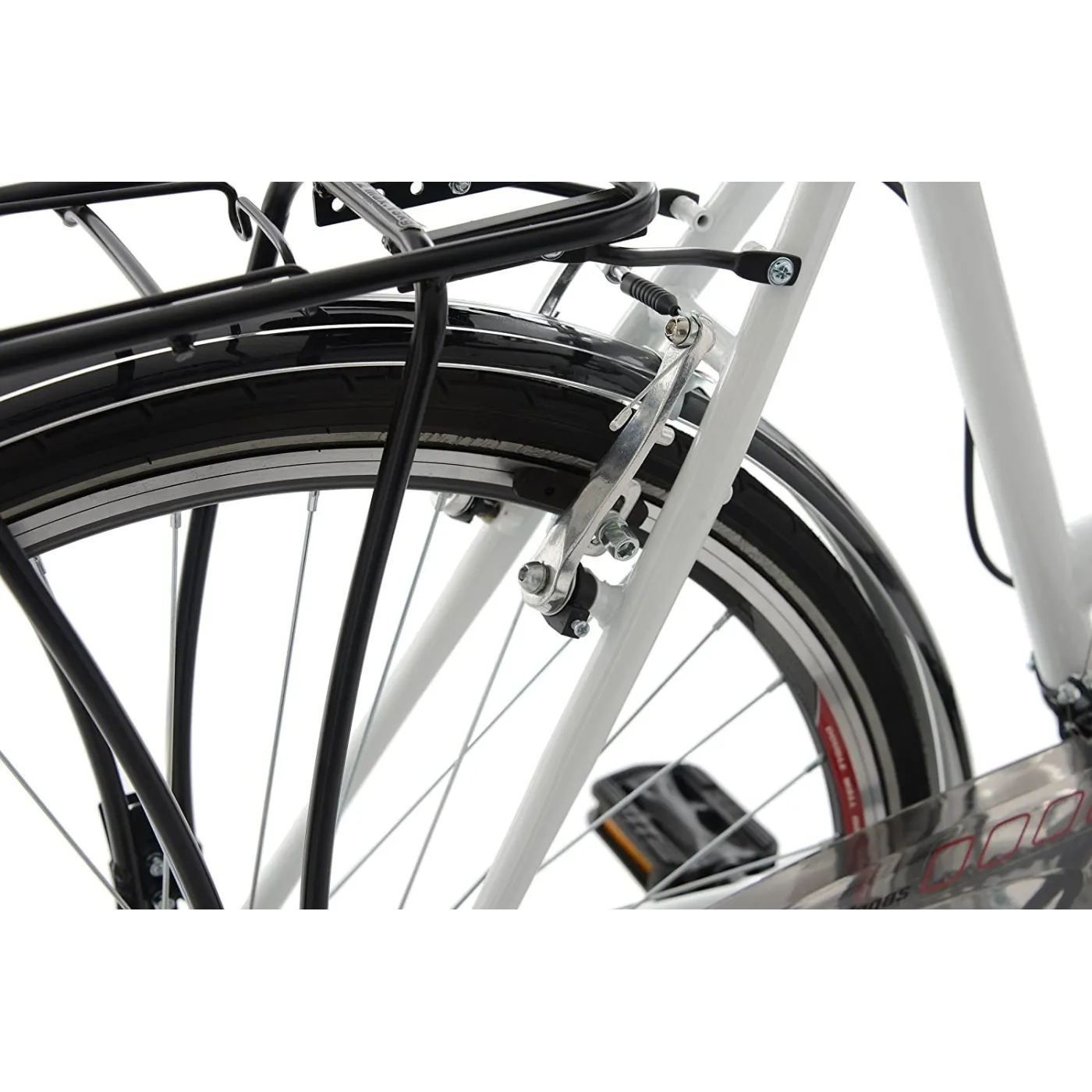 🚲 Duże koła o średnicy 28 cali, wyposażone w opony 700x35C, sprawiają, że jazda jest stabilna i komfortowa nawet po nierównej nawierzchni. Dodatkowo rower został wyposażony w błotniki, osłonę łańcucha, bagażnik, oświetlenie, dzwonek, stopkę i odblaski, co sprawia, że idealnie sprawdzi się zarówno w mieście, jak i podczas weekendowych wycieczek poza miasto.