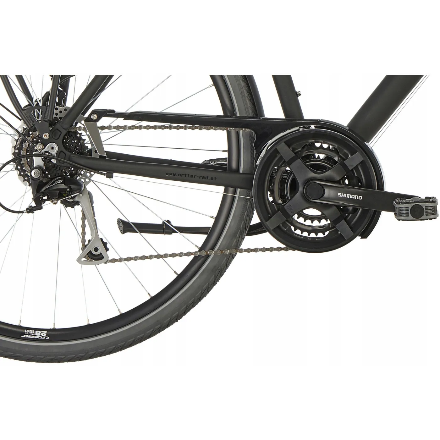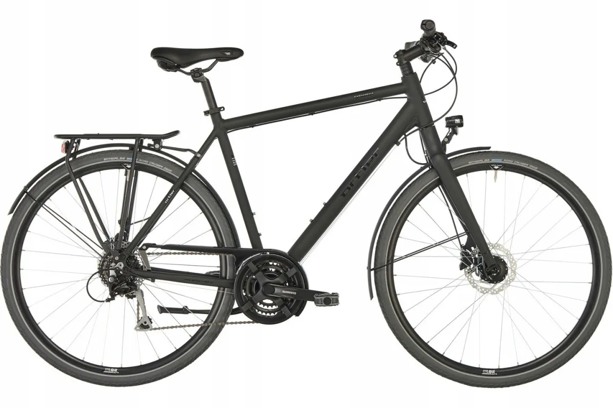 Rower Ortler Saragossa w eleganckim kolorze czarnego matu.Zapewni Ci wygodną wycieczkę przez miasto, a także bezpieczną wędrówkę w dłuższych trasach. Posiada świetnej jakości przerzutki SHIMANO, oświetlenie z przodu i z tyłu oraz wielofunkcyjny bagażnik, który ułatwia przewożenie potrzebnych rzeczy.