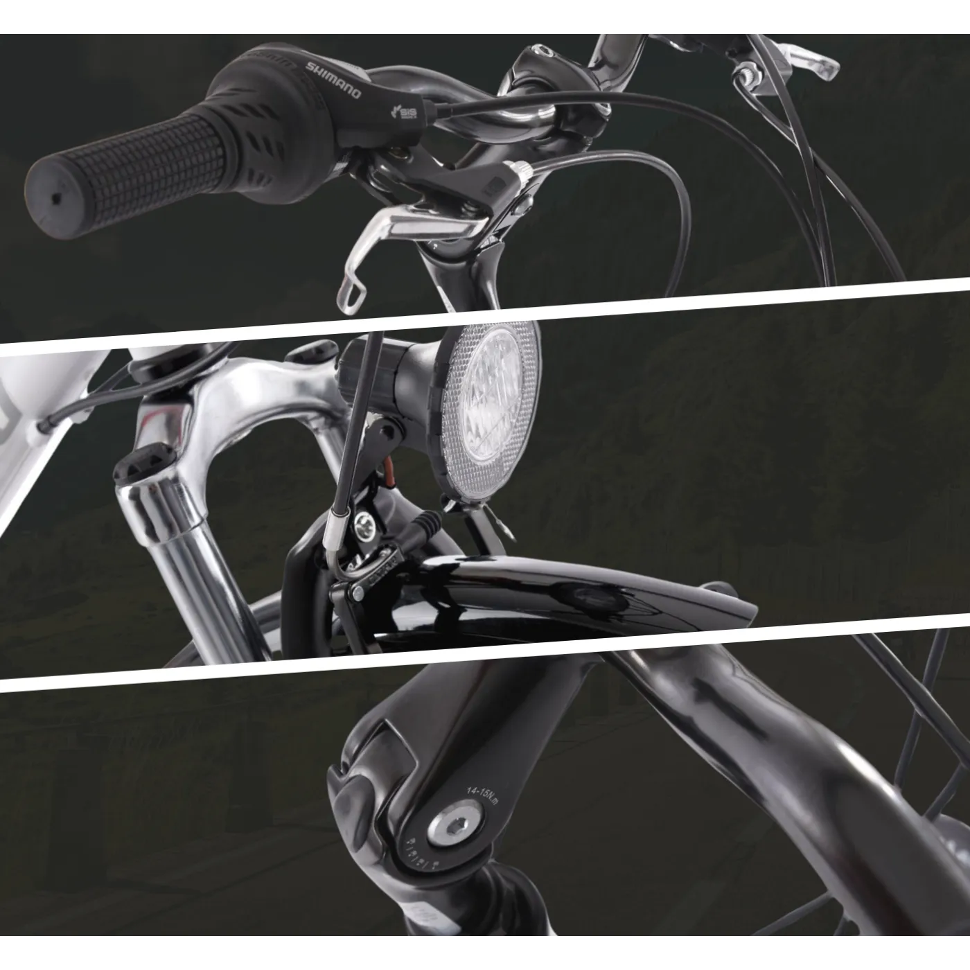 👉 Posiada ramę o przyjaznej dla kobiet geometrii, wykonaną z lekkiego aluminium, a do tego amortyzowany widelec, który niweluje drobne wyboje na trasie. 21-biegowa zmiana biegów Shimano, którą można obsługiwać za pomocą manetek obrotowych na kierownicy, pozwala na dostosowanie roweru do warunków - prostej drogi lub wzniesień.