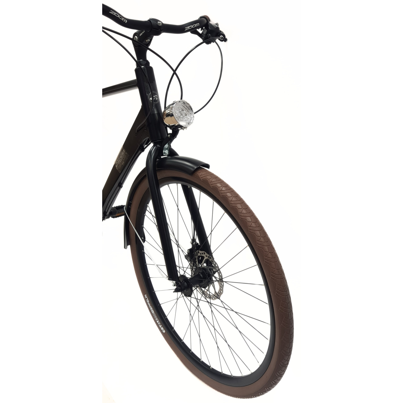 ✔️ Opony o wymiarach 28" x 1,75" gwarantują płynne i stabilne jazdę po miejskich ulicach, zapewniając pewny kontakt z nawierzchnią. Dzięki temu rower doskonale sprawdzi się zarówno na krótszych, jak i dłuższych trasach, pozwalając cieszyć się jazdą bez obaw o komfort i bezpieczeństwo. Hamulce tarczowe mechaniczne zapewniają odpowiednią siłę hamowania.