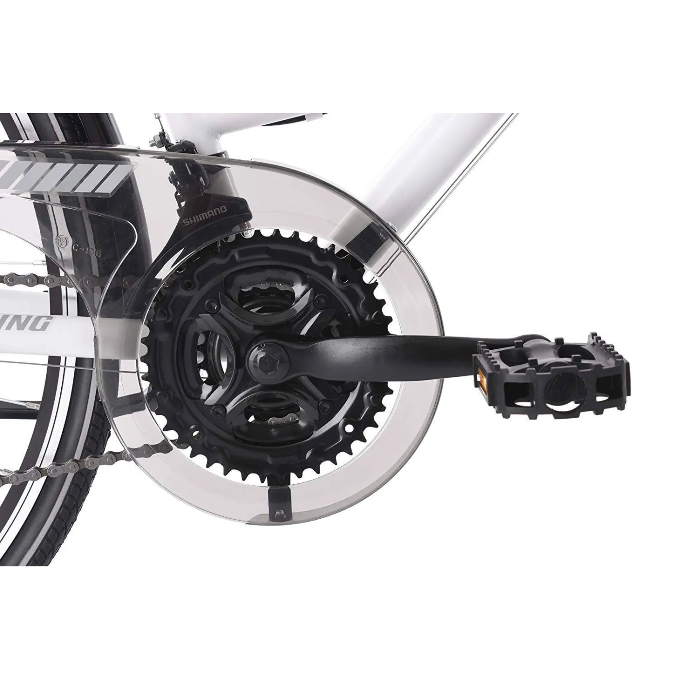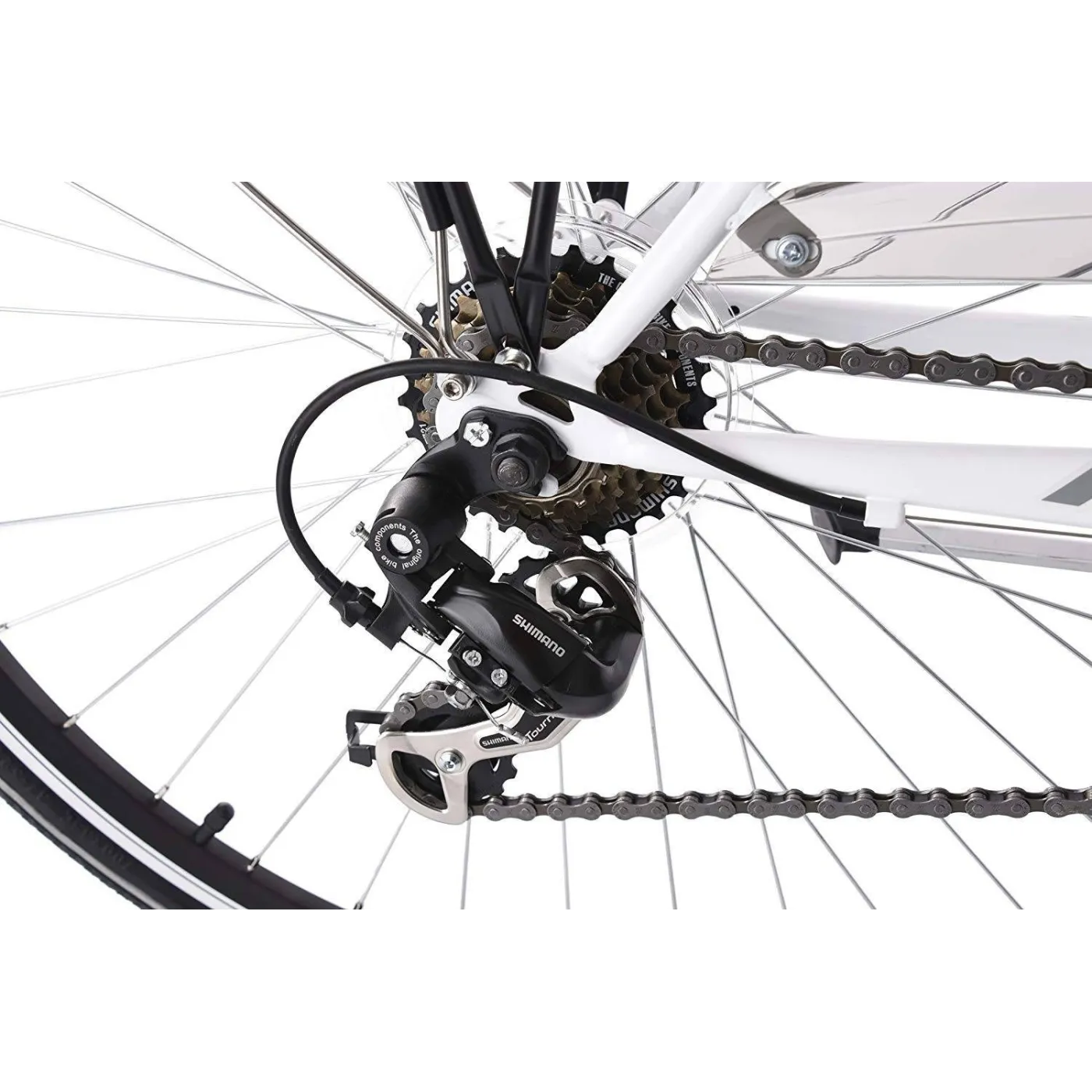 Rower trekkingowy Montreal to idealna propozycja dla każdej kobiety, która ceni lekkość jazdy w każdych warunkach. Na całość pozytywnych wrażeń składa się wiele czynników technicznych. Dobra specyfikacja techniczna idąca z pięknym wykonaniem to wyróżnik tego modelu. Grzechem byłoby nie wspomnieć o markowych przerzutkach SHIMANO o 21 przełożeniach, amortyzowanym widelcu przednim oraz o zestawie oświetlenia LED, które otrzymujesz w zestawie.