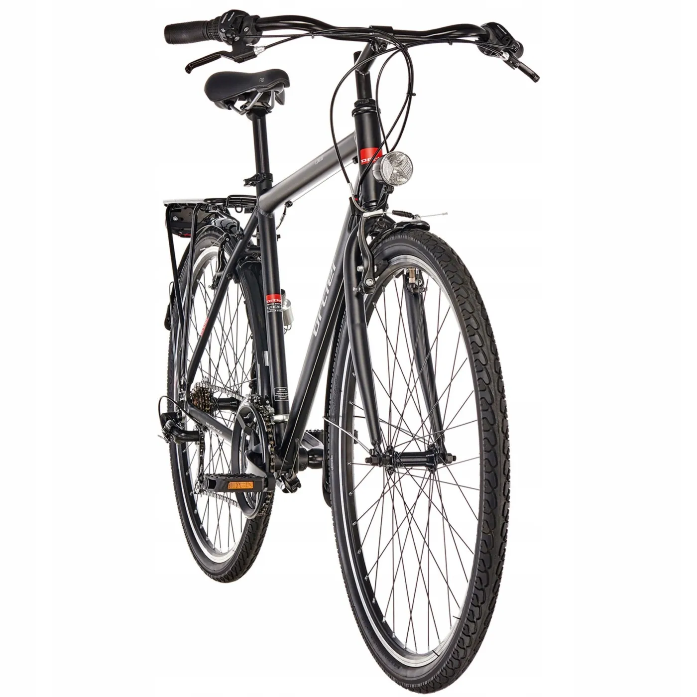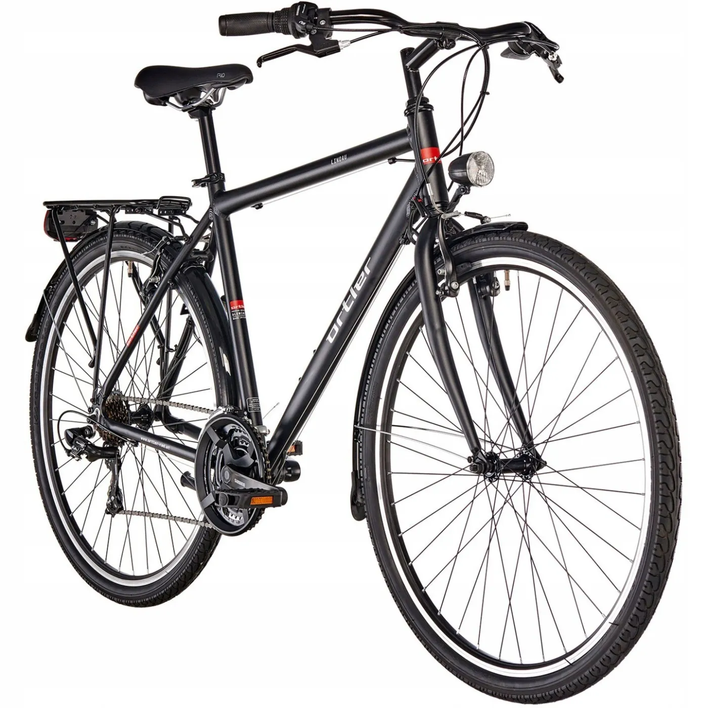 Rower turystyczny świetny do weekendowych wycieczek jak i do poruszania się na co dzień. Dużym plus i ułatwieniem jest bagażnik, który pomoże Ci przewozić najpotrzebniejsze rzeczy. Posiada oświetlenie LED, które zapewnia bezpieczne poruszanie w terenie. 21 biegów ułatwia zarówno jazdę pod wzniesienia jak i jazdę na równej powierzchni.