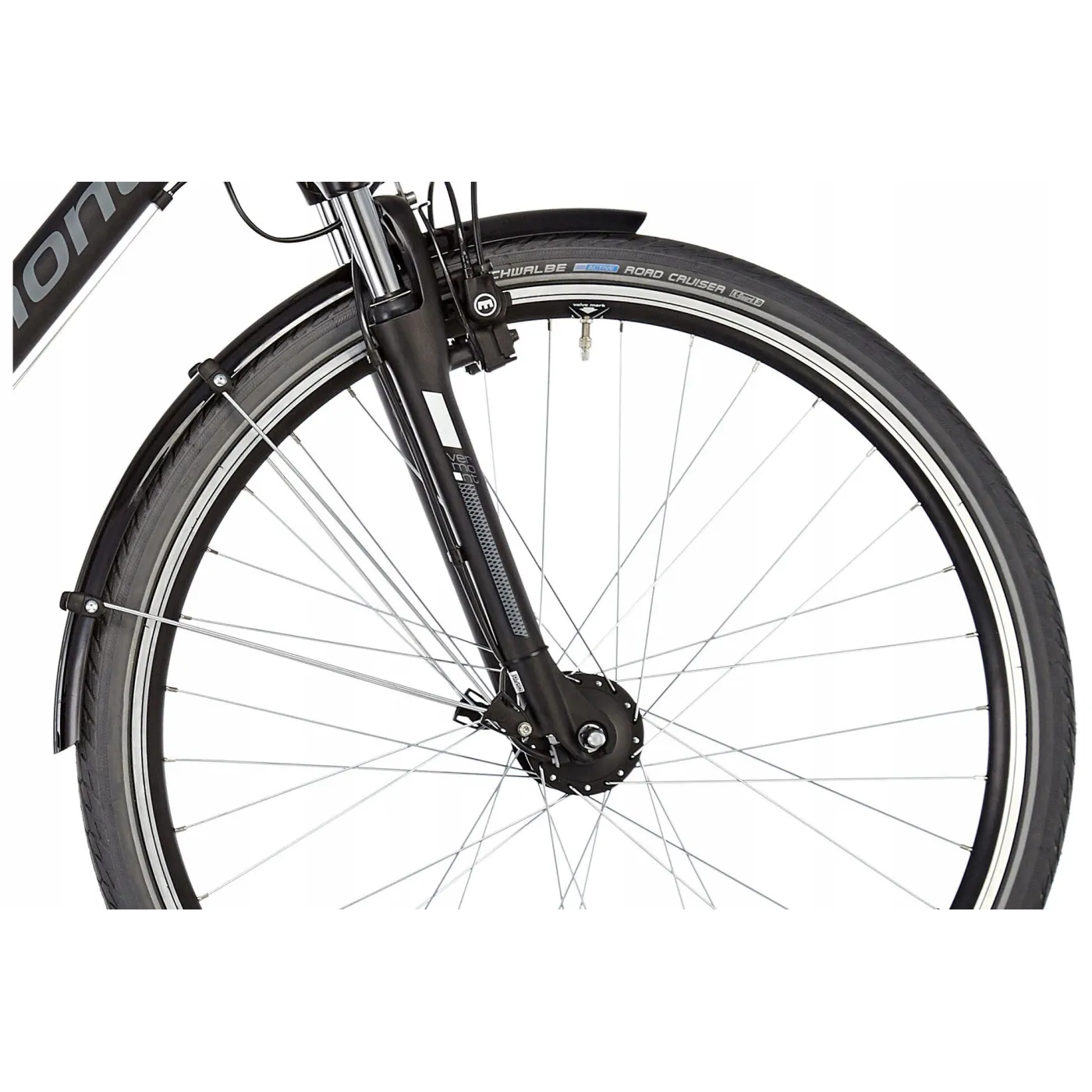 Dzięki lekkiemu aluminiowej konstrukcji można wygodnie i bez wysiłku podbijać miasto lub wyruszyć na dalsze drogi. Widelec amortyzujący chroni przed wstrząsami spowodowanymi niewielkimi nierównościami w terenie oraz małymi przeszkodami. Natomiast dzięki niezawodnemu 24-biegowemu sprzętowi Shimano Alivio łatwo znajdziesz odpowiedni bieg i bez trudów pokonasz każdy kilometr.