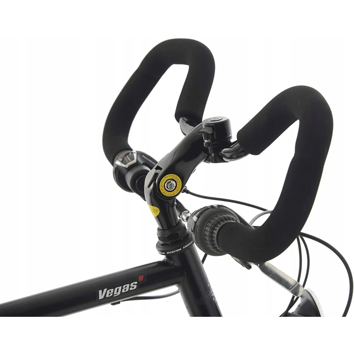 Doskonale trafiłeś - rower trekkingowy Vegas sprawdzi się doskonale na weekendowe wycieczki! Sprzęt wykonany z należytą solidnością, a do tego świetnie wygląda. W pełni wyposażony ponieważ posiada stalowy bagażnik, osłonę na łańcuch, reflektory, stopkę, a nawet dzwonek. Do tego 21 biegów Shimano i regulowaną kierownicę, co pozwoli dostosować rower do indywidualnych preferencji.