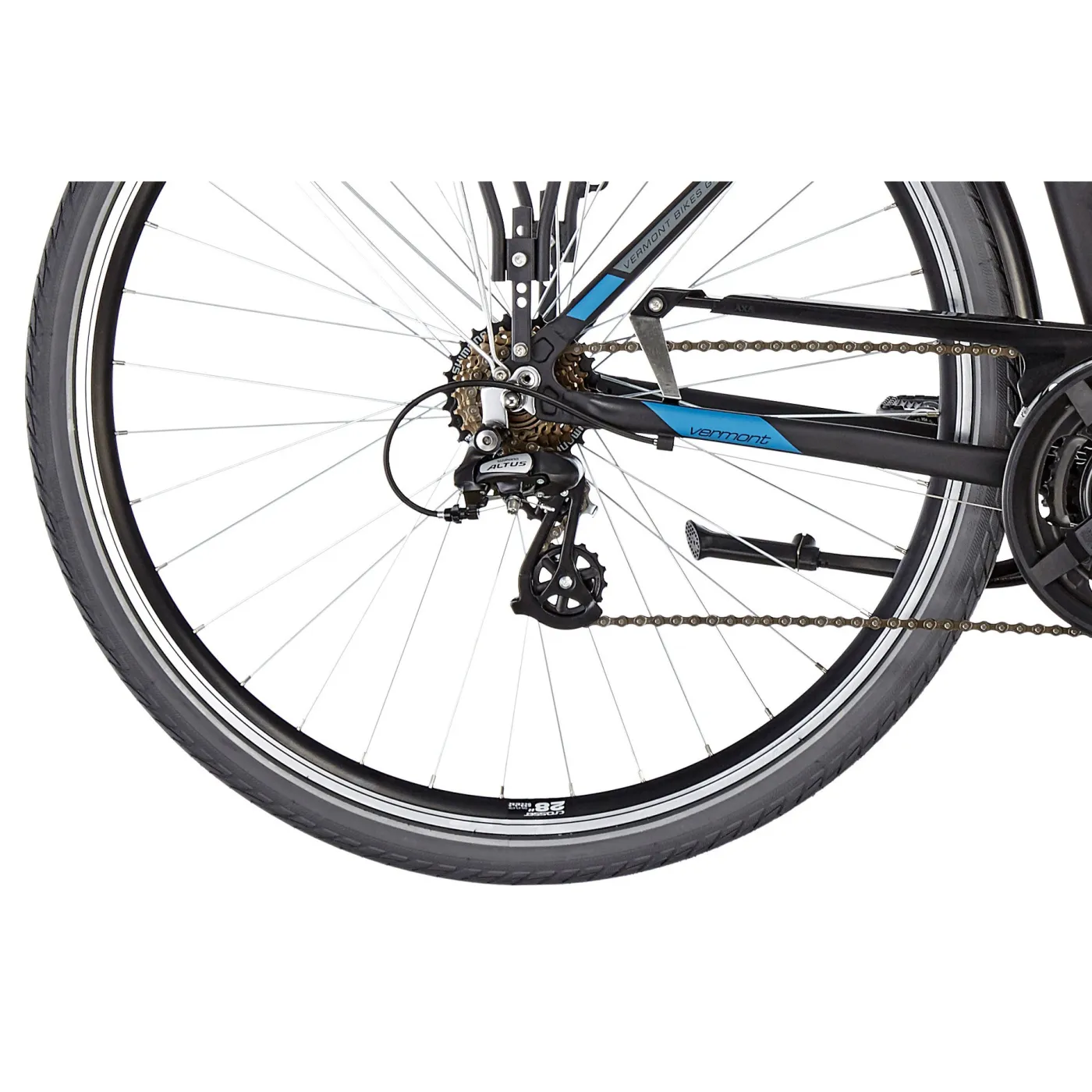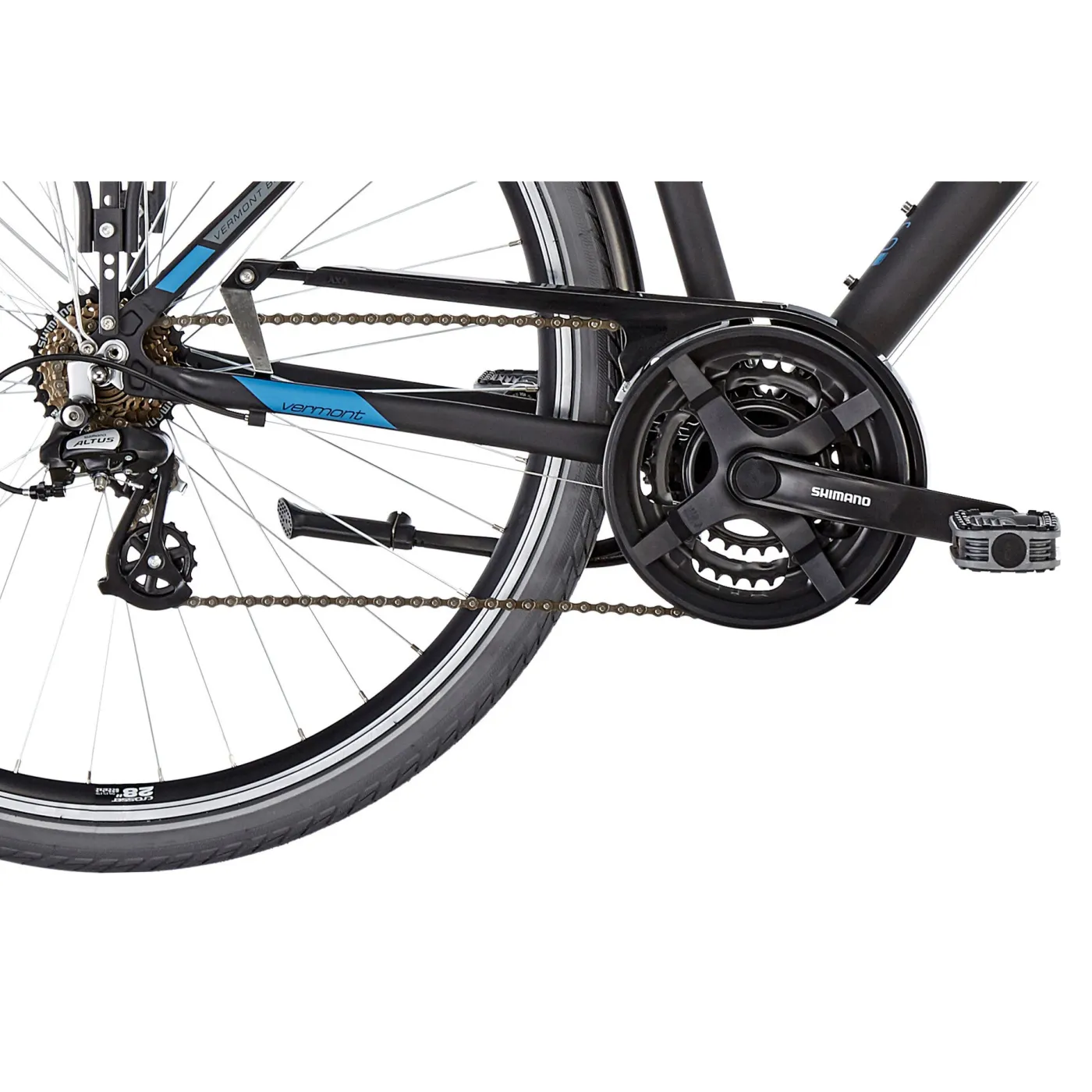Lekki rower z aluminiową ramą o bardzo ergonomicznym kształcie z wygodnym siodełkiem oraz odpowiednio dobraną kierownicą sprawi, że każda wycieczka będzie komfortowa. Duże, 28 calowe koła z niewielkim bieżnikiem świetnie sprawdzą się na asfalcie, polnej ścieżce oraz szutrowej drodze. Rower wyposażony jest w hamulce V-brake oraz 21 biegów Shimano Altus, dlatego z łatwością poradzi sobie na zróżnicowanym terenie.