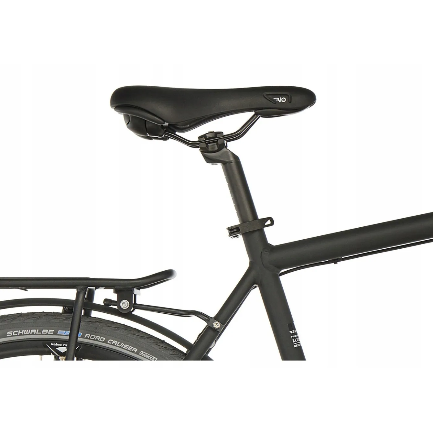 Zapewni Ci wygodną wycieczkę przez miasto, a także bezpieczną wędrówkę w dłuższych trasach. Posiada świetnej jakości przerzutki SHIMANO, oświetlenie z przodu i z tyłu oraz wielofunkcyjny bagażnik, który ułatwia przewożenie potrzebnych rzeczy.