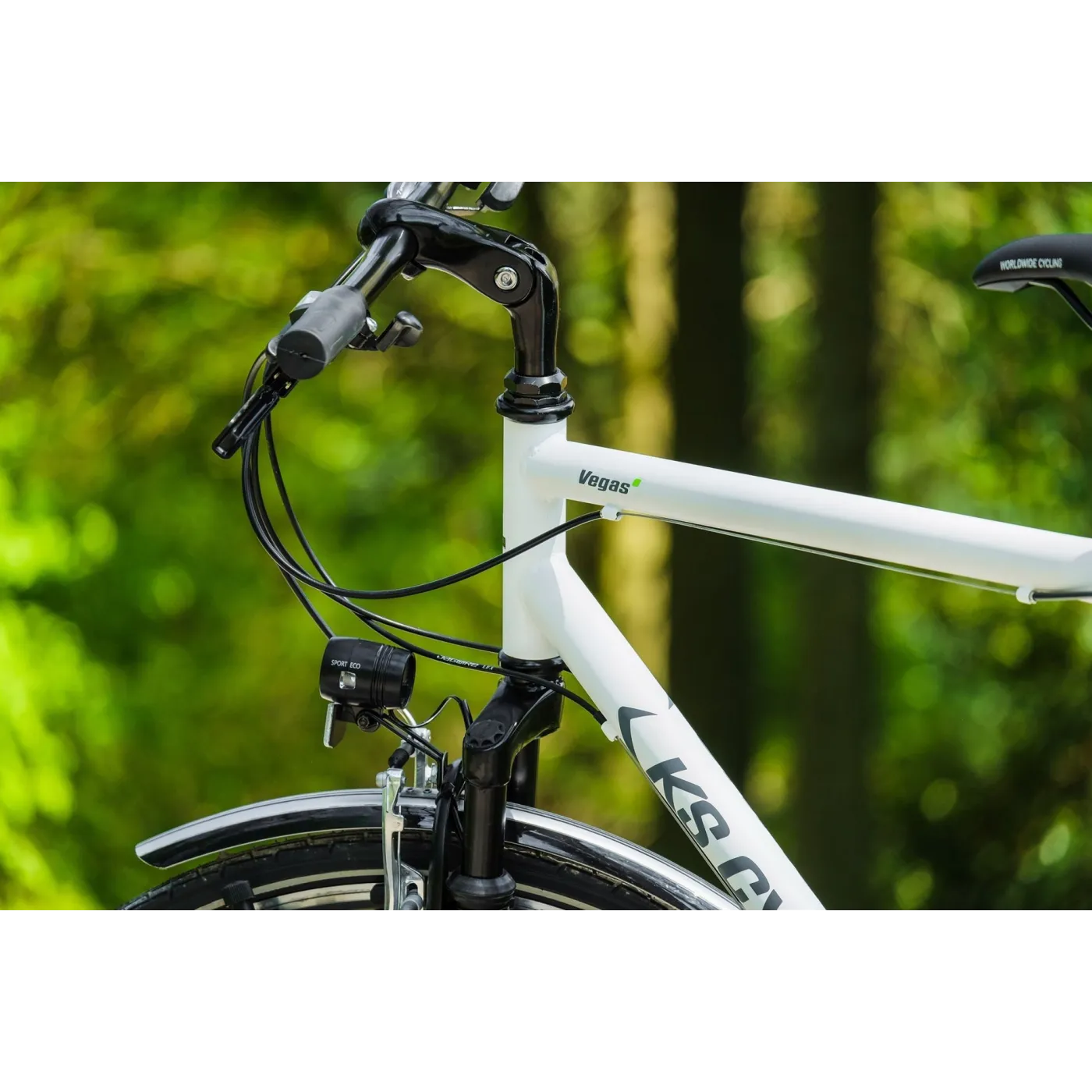 Model Vegas to jeden z bardziej lubianych rowerów trekkingowych. Nic dziwnego, gdyż jest to sprzęt wykonany z należytą solidnością, a do tego świetnie wygląda. W pełni wyposażony, ponieważ posiada stalowy bagażnik, osłonę na łańcuch, reflektory, stopkę, a nawet dzwonek.