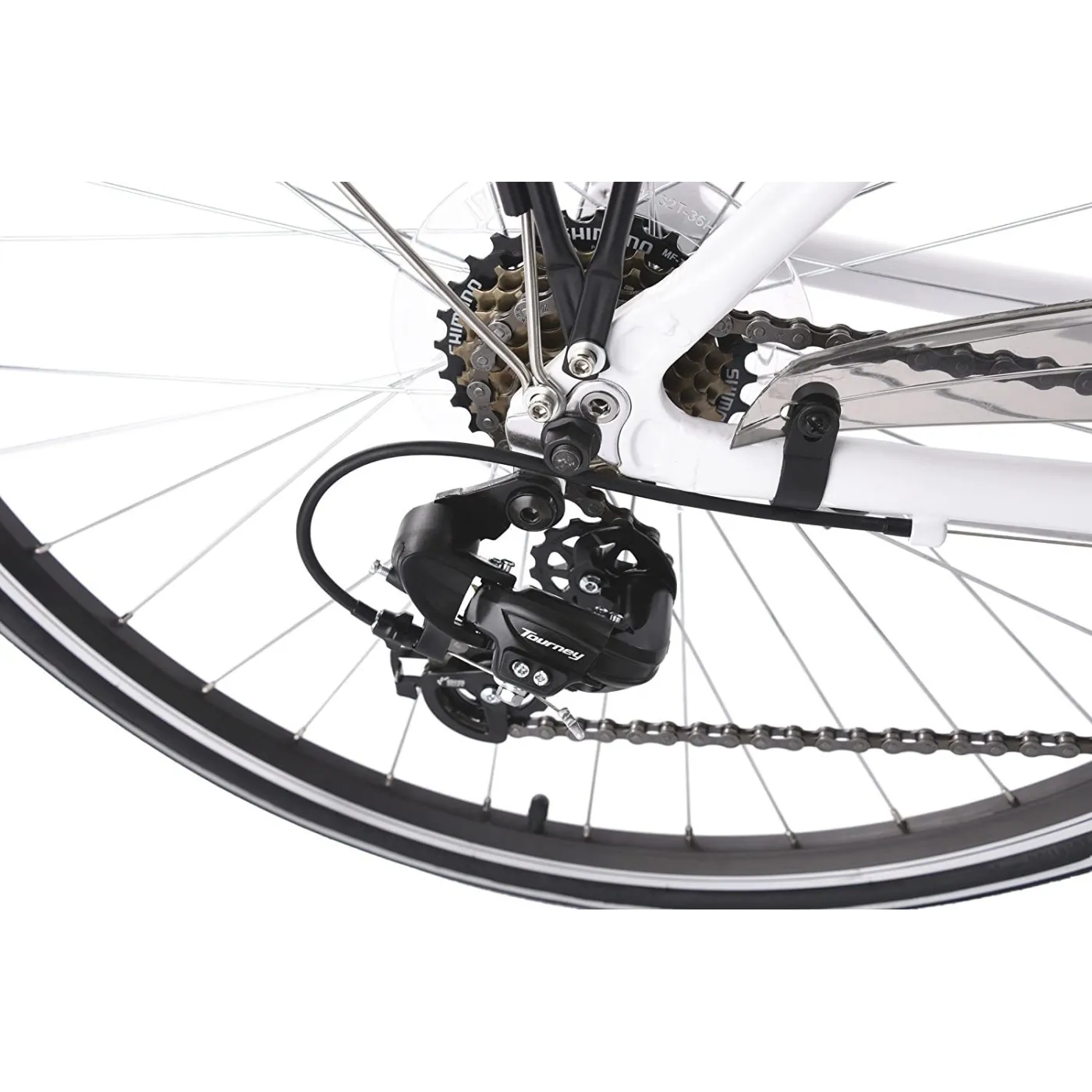 Posiada ramę o przyjaznej dla kobiet geometrii, wykonaną z lekkiego aluminium, a do tego amortyzowany widelec, który niweluje drobne wyboje na trasie. 21-biegowa zmiana biegów Shimano, którą można obsługiwać za pomocą manetek obrotowych na kierownicy, pozwala na dostosowanie roweru do warunków - prostej drogi lub wzniesień.