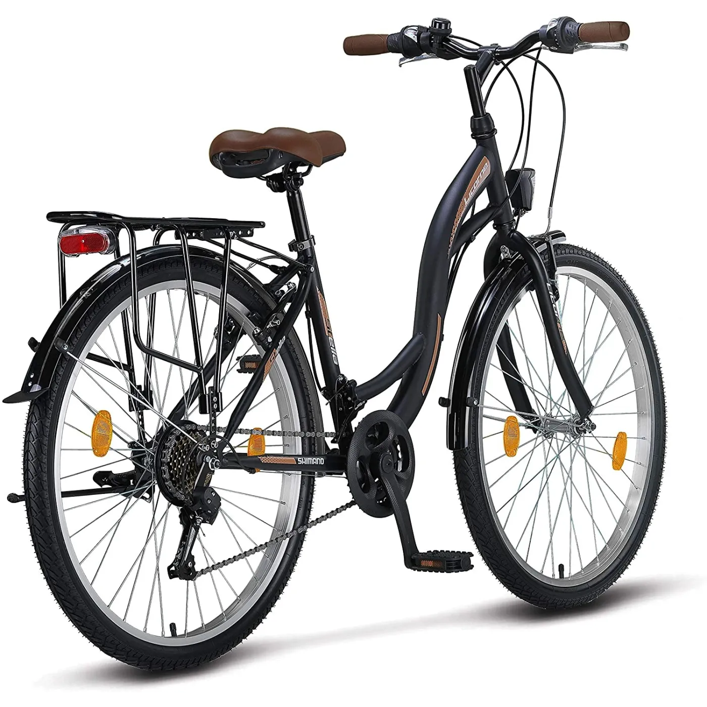 Jak na typowy rower miejski przystało, Stella w swoim wyposażeniu posiada bogate wyposażenie: wygodne szerokie siodełko, mocne błotniki, które ochronią Cię przed każdymi warunkami atmosferycznymi oraz bagażnik, który udźwignie twoje zakupy.