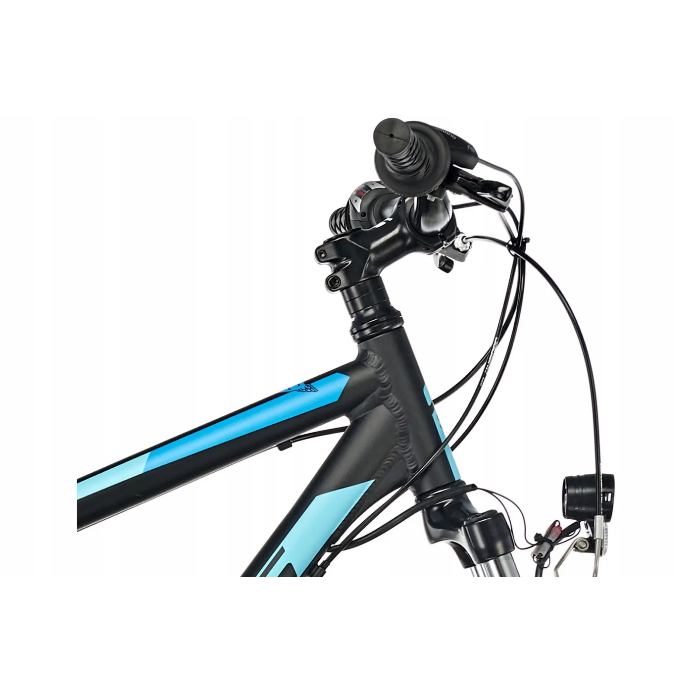 Lekka aluminiowa rama uzupełnia dobrze wyważony komponent, który oferuje duży komfort i świeży, ponadczasowy design. Dźwignie zmiany biegów Shimano Revoshift sprawiają, że przełączanie między 21 biegami to bułka z masłem, dzięki czemu możesz z łatwością przedzierać się przez miasto lub pokonywać szybką leśna trasę. Amortyzowany widelec, opony z bieżnikiem, wygodne sportowe siodełko zapewniają duży komfort jazdy. Stabilne koła z pustymi obręczami i dobrze dopasowane hamulce typu V zapewniają bezpieczeństwo.