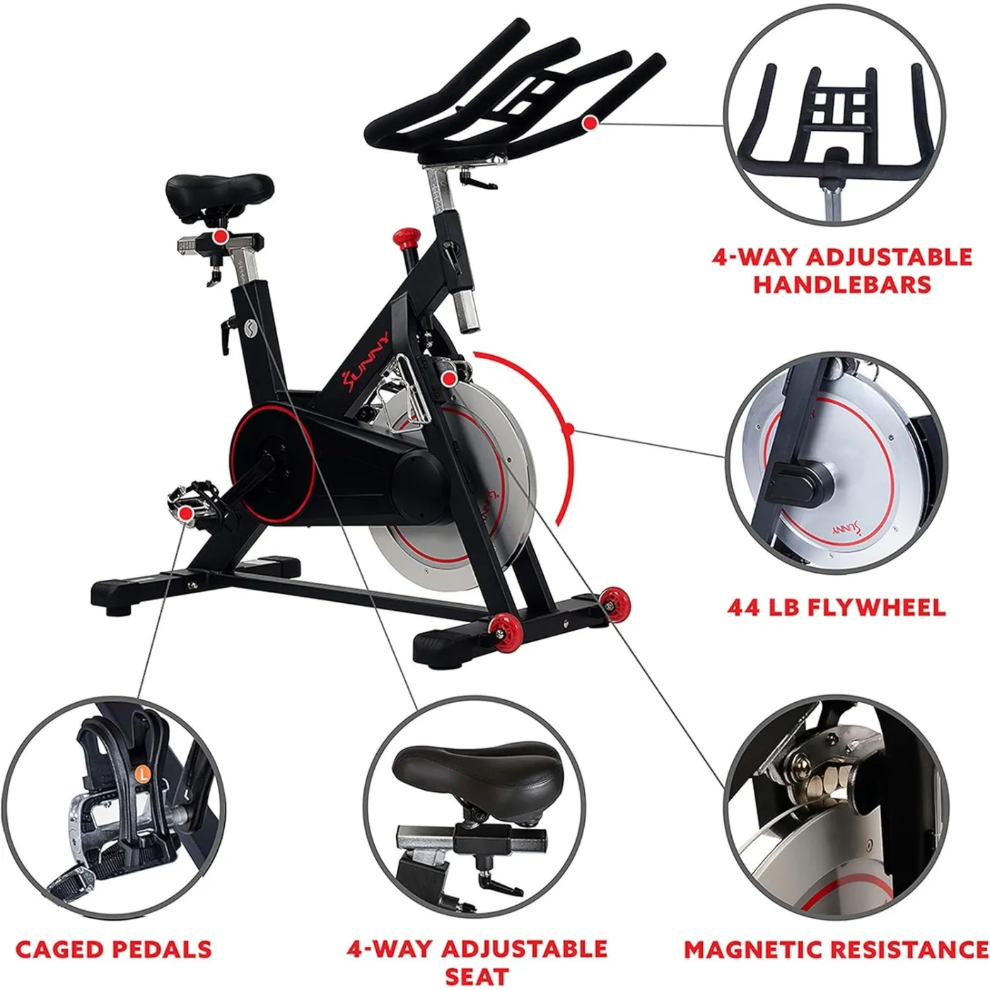 👉 Sunny Health & Fitness SF-B1805 to profesjonalny rower spinningowy, który zapewnia płynny i cichy trening w domowym zaciszu. Dzięki masywnemu kołu zamachowemu o wadze 20 kg oraz bezstopniowej regulacji oporu, pozwala na precyzyjne dostosowanie intensywności ćwiczeń do indywidualnych potrzeb