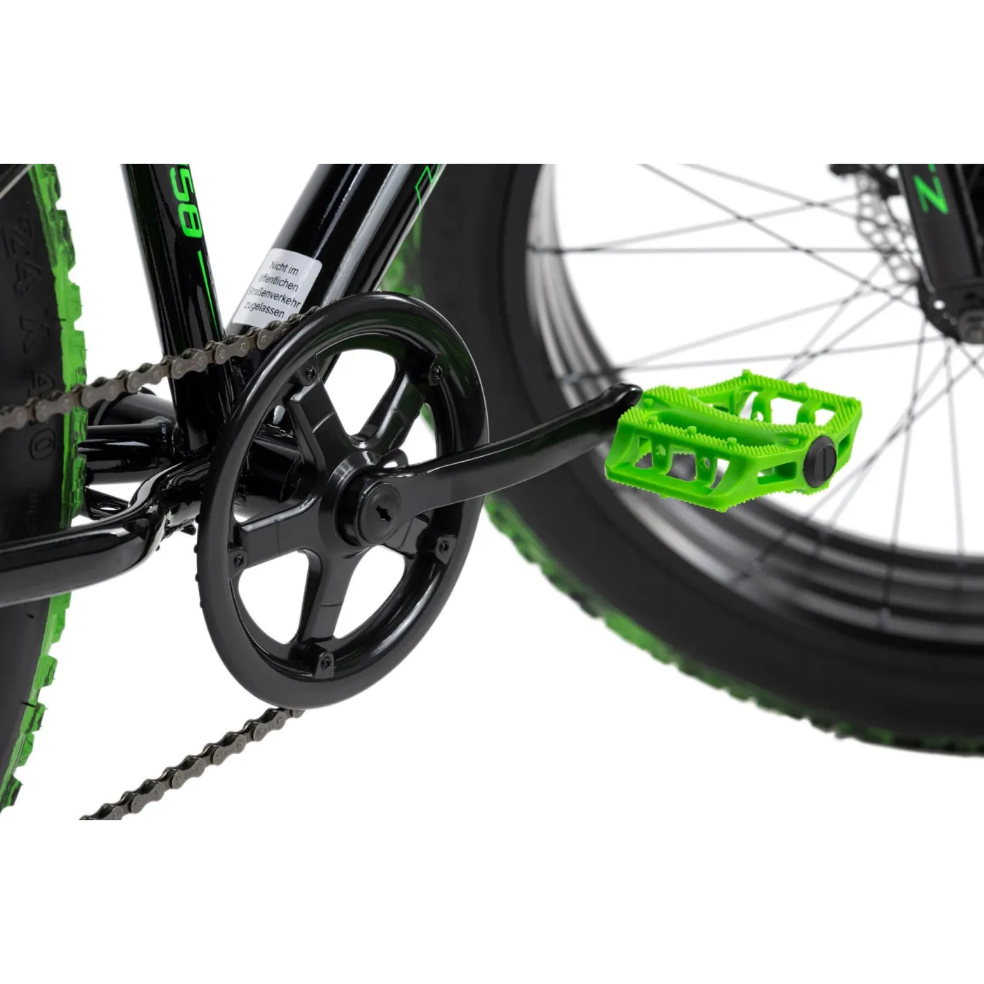 Prezentowany model od KS Cycling został stworzony do działania w ekstremalnych warunkach i świetnie czuje się na piasku, śniegu, błocie i innych wymagających nawierzchniach! Amortyzowany widelec jest całkowicie zbędny, ponieważ obszerne opony zapewniają duży komfort tłumienia. Rower wyposażony jest w 6-biegową skrzynię biegów. Hamowanie odbywa się za pomocą mechanicznych hamulców tarczowych na przednich i tylnych kołach.