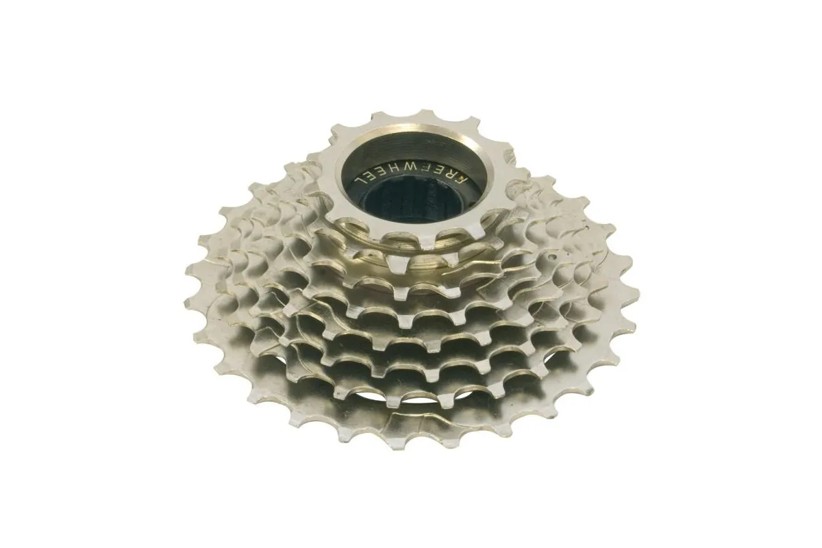 Niklowany zamiennik 8-biegowego wolnobiegu. Powłoka niklowa zatrzymuje rdzewienie i wspomaga ruch łańcucha, zapobiegając przyklejaniu się do wolnobiegu.