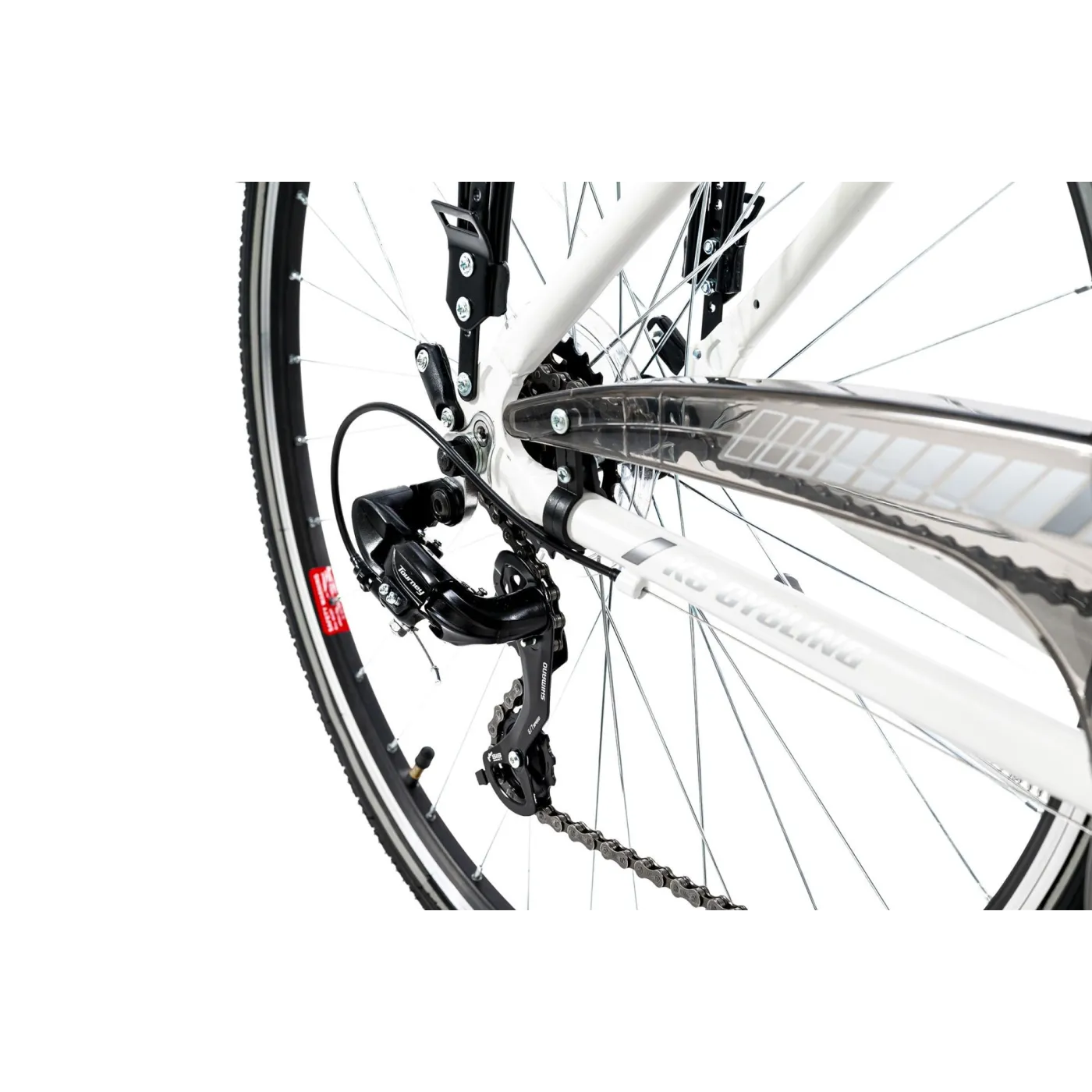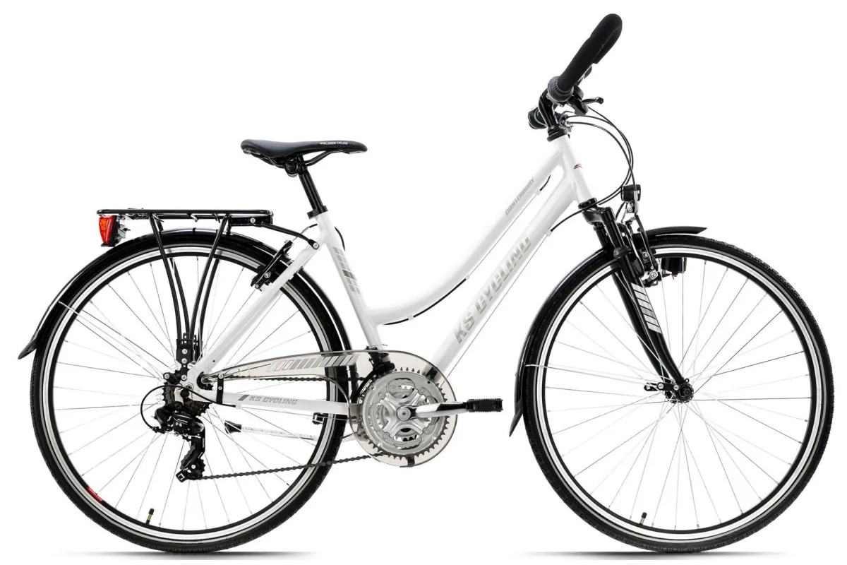 Twój sportowy i elastyczny jednoślad o wszechstronnych zaletach: damski rower trekkingowy Canterbury 28" firmy KS Cycling radzi sobie z wieloma wyzwaniami, od szybkiej jazdy po mieście, przez dłuższe wycieczki trekkingowe, po te najdłuższe! Biała aluminiowa rama połączona z subtelnymi szarymi detalami. Przezroczysta osłona łańcucha i płaska kierownica turystyczna dopełniają całości. Dzięki 21-biegowej przerzutce Shimano żaden teren nie będzie stanowił problemu. Dzięki amortyzowanemu widelcowi nie poczujesz już żadnego wyboju na trasie.