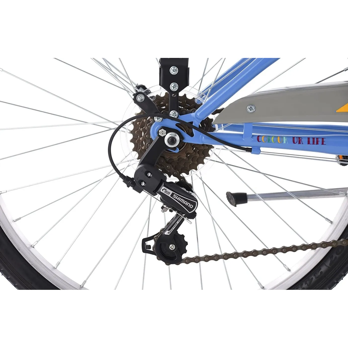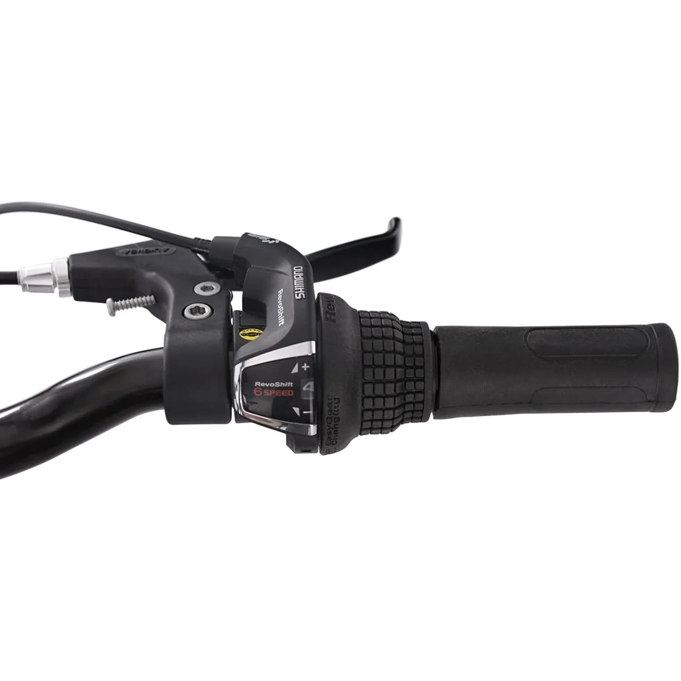 6-biegowa przerzutka SHIMANO Tourney gwarantuje płynną jazdę nawet podczas nieco dłuższych wycieczek i zapewnia niezawodne przełożenia. Dzięki nim Twoje dziecko nie zmęczy się tak bardzo wjeżdżając pod górkę. Każde dziecko bez żadnego problemu zmieni biegi za pomocą intuicyjnej i prostej w obsłudze manetki obrotowej marki Shimano. Szeroka kierownica daje najlepszą możliwą kontrolę nad rowerem. Hamulce typu V-Brake pozwalają na bezpieczne hamowanie w każdej sytuacji.