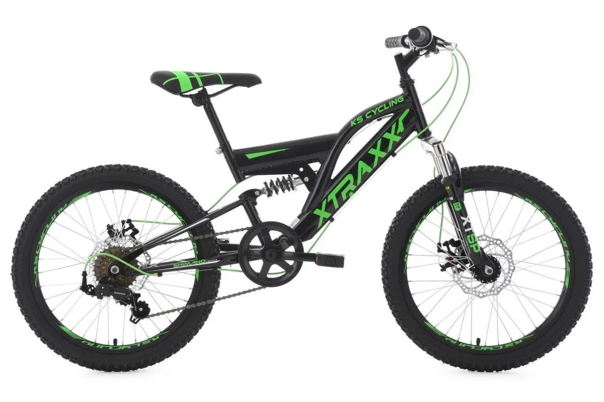20-calowy rower dziecięcy Xtraxx z pełnym zawieszeniem firmy KS Cycling to bez wątpienia doskonały wybór! Amortyzowany widelec i amortyzowana rama w połączeniu z oponami do rowerów górskich z głębokim bieżnikiem to nie wszystko czym może się poszczycić. Mechaniczne hamulce tarczowe z przodu i z tyłu zapewniają wymagane bezpieczeństwo. Model jest również wyposażony w 7-biegową przerzutkę Shimano. Dzięki Xtraxx mali rowerzyści górscy są bezpieczni i jednocześnie stylowi!