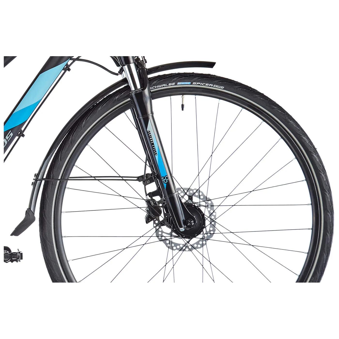 Lekka rama dzięki dobrze zrównoważonej geometrii zapewnia bezpieczeństwo i komfort podczas dłuższych przejażdżek. Całości dopełniają niezawodne stabilne koła z pustokomorowymi obręczami oraz gładko toczące się opony Schwalbe i bezobsługowy wkład suportu.