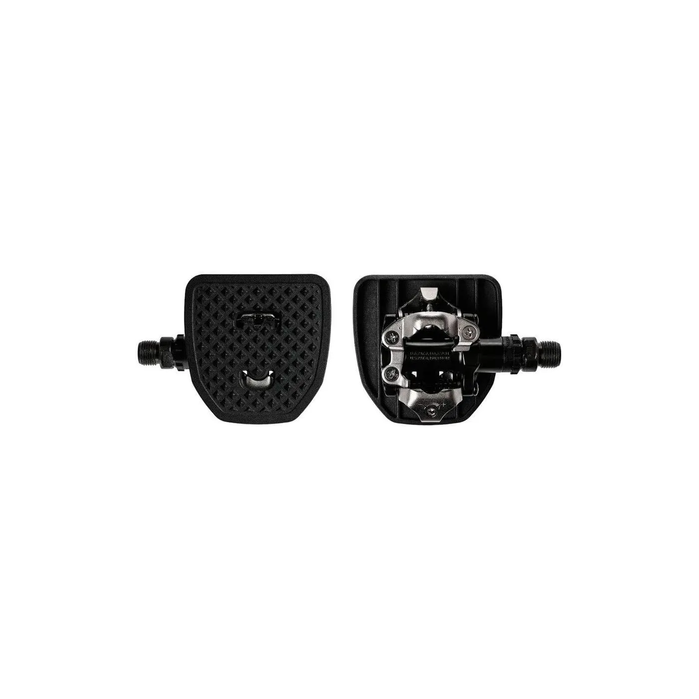 Dzięki praktycznym i łatwym w montażu płytkom adaptera można szybko przekształcić pedały zatrzaskowe w przyczepne pedały platformowe do każdego rodzaju butów. Wykonane w 100% z materiałów pochodzących z recyklingu, wytrzymałe plastikowe płytki zapewniają, że możesz używać swojego ścigacza nie tylko do jazdy na rowerze szosowym, np. do dojazdów do pracy, jazdy rekreacyjnej lub zakupów spożywczych.