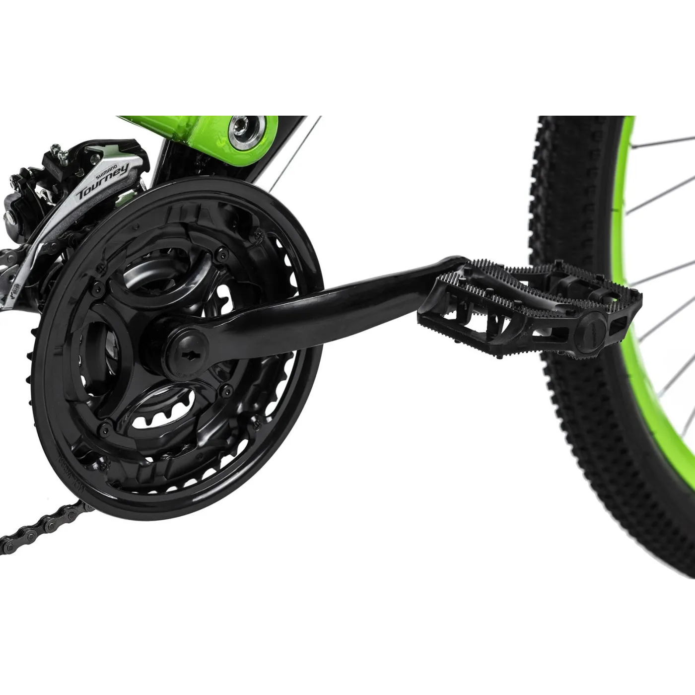 Solidne komponenty, tylne zawieszenie, amortyzowany widelec i mechaniczne hamulce tarczowe zapewniają komfort i bezpieczeństwo. Rower górski wyposażony jest w 21-biegową przerzutkę z manetkami Rapid Fire. To sprawia, że energiczna wędrówka po lesie jest świetną zabawą!