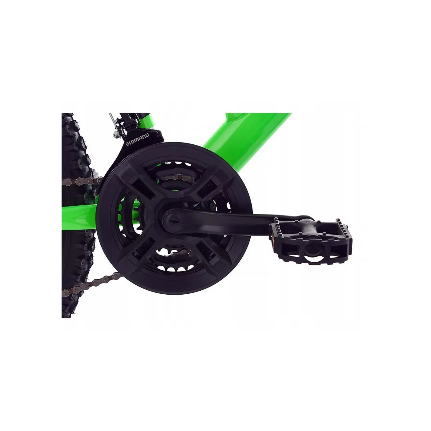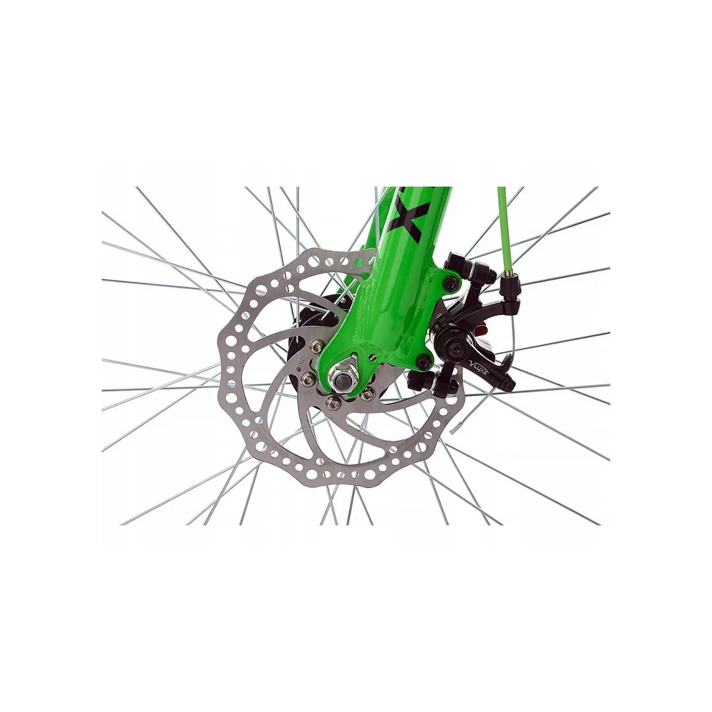 Rower w kolorze zielonym, który świetnie komponuję się z pomarańczowymi napisami, co z pewnością przypadnie do gustu każdemu chłopcu lubiącemu się wyróżniać. Solidna, amortyzowana rama gwarantuje pełen komfort jazdy nawet na bardzo nierównej powierzchni. Góral posiada dwa mechaniczne hamulce tarczowe V-LUXE dbają o bezpieczeństwo użytkownika, niezależnie od podłoża oraz warunków atmosferycznych.