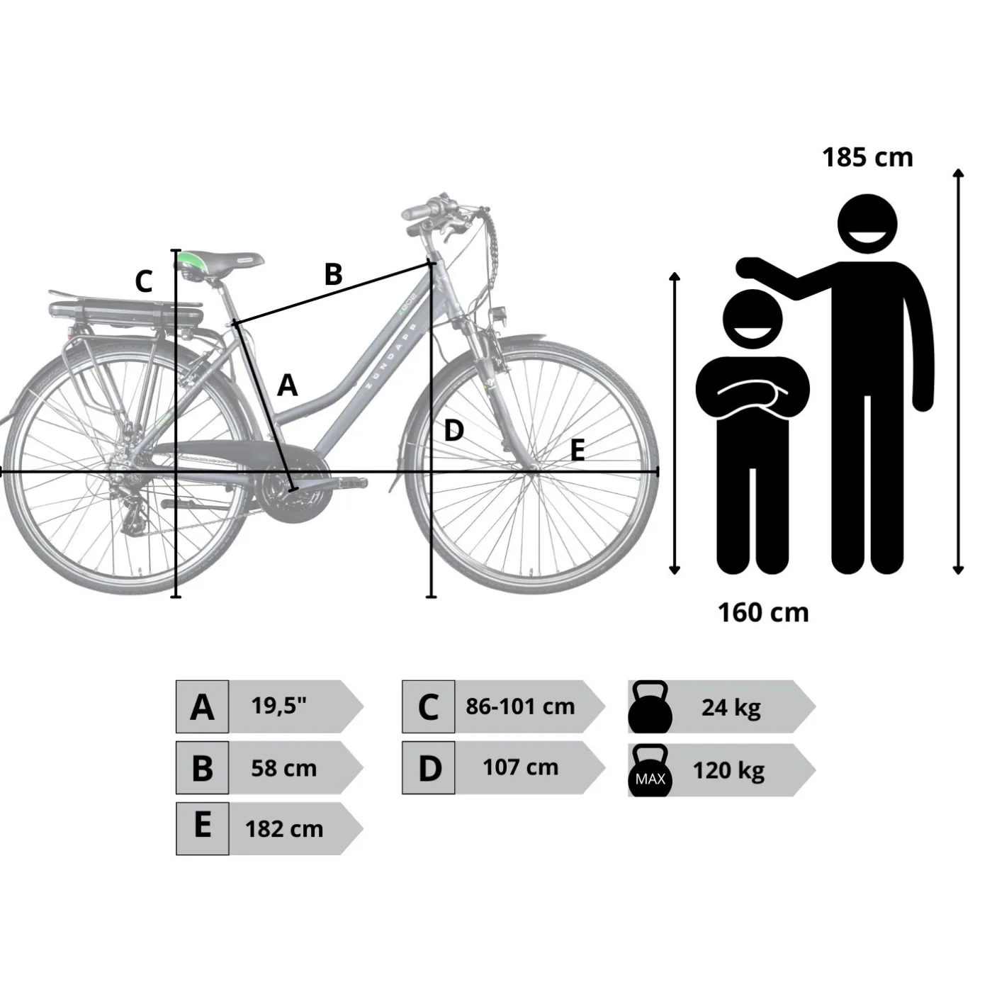🔋 Pedelec napędzany jest niezawodnym silnikiem elektrycznym umieszczonym na tylnym kole, który rozwija prędkość do 25 km/h. Wybór 3 poziomów jazdy odbywa się na przejrzystym wyświetlaczu LED. Dodatkowo, bateria o pojemności 374.4 Wh pozwoli Ci pokonać nawet do 115 km!