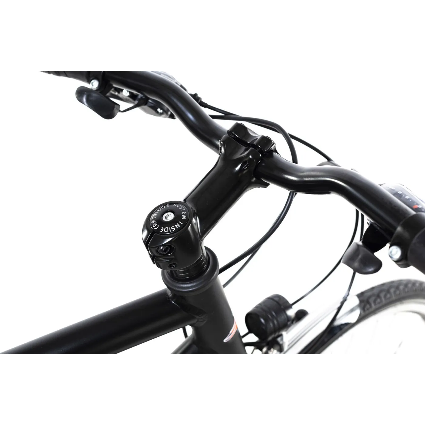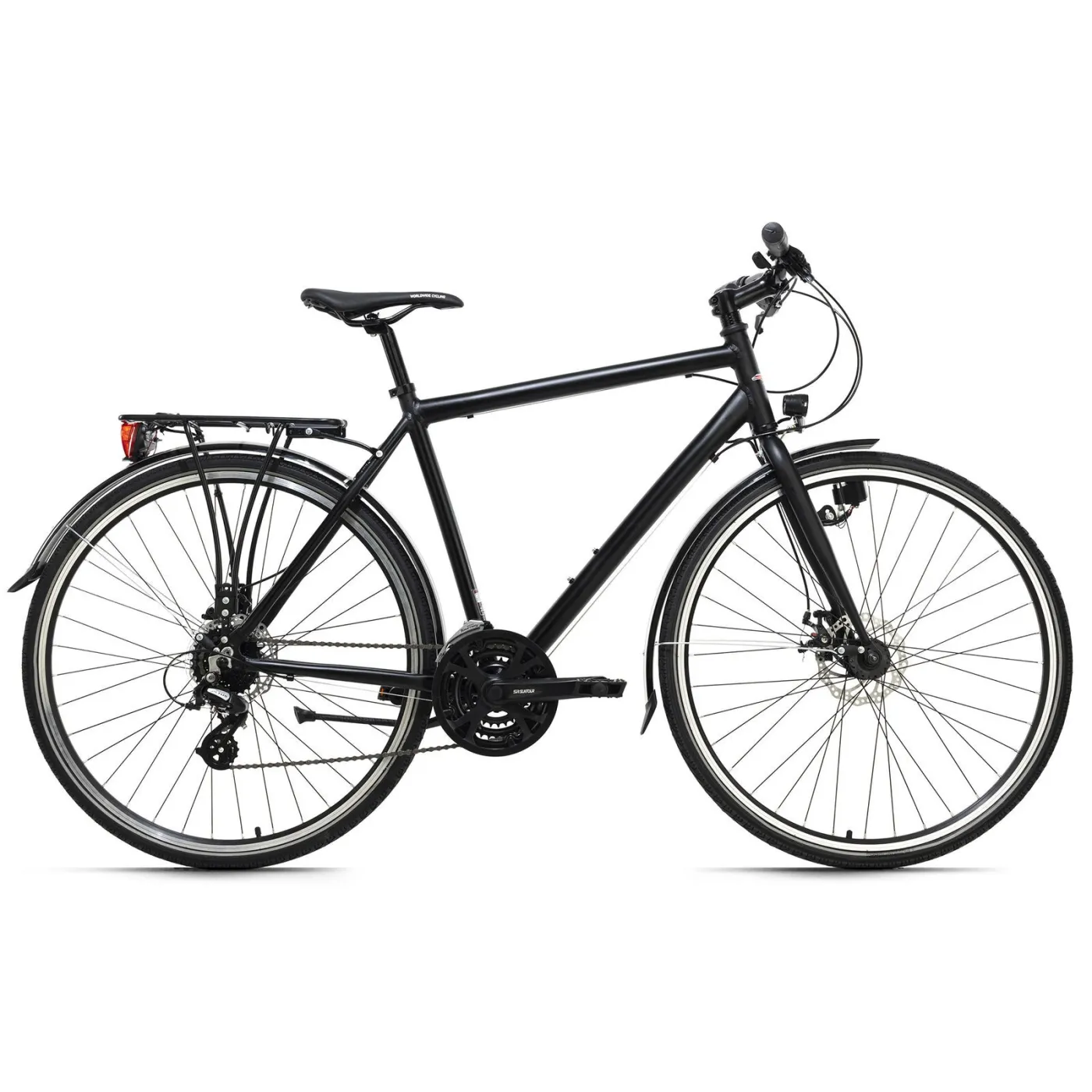 Odkryj sportowy świat na męskim rowerze trekkingowym KS Cycling 28" NORFOLK SPORT! Rower ma lekką aluminiową ramę w eleganckiej matowej czerni. Puryzm i wysoka wydajność łączą się tutaj: dzięki 24-biegowej przerzutce firmy SHIMANO jesteś przygotowany na każde wzniesienie, mechaniczne hamulce tarczowe zapewniają niezawodne hamowanie, a Ty jesteś bezpieczny na drodze nawet w ciemności, bo Norfolk SPORT posiada reflektor LED oraz tylne światła z wbudowanym reflektorem.