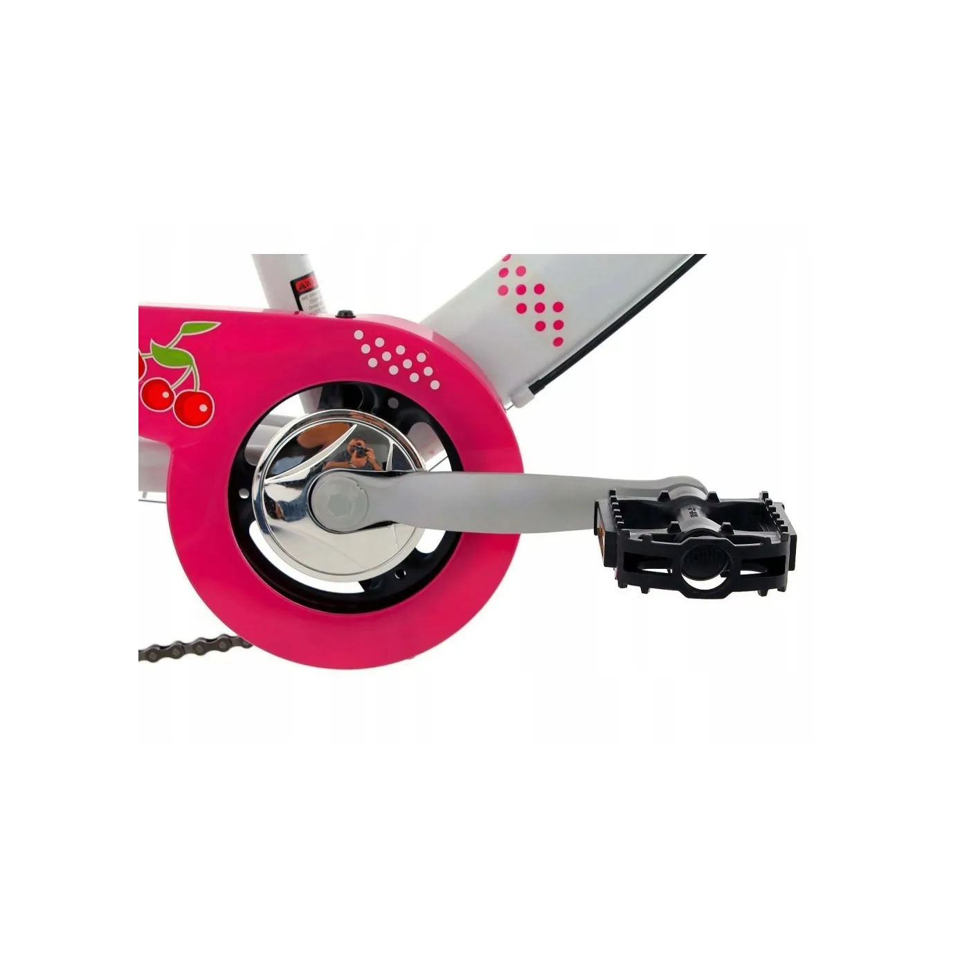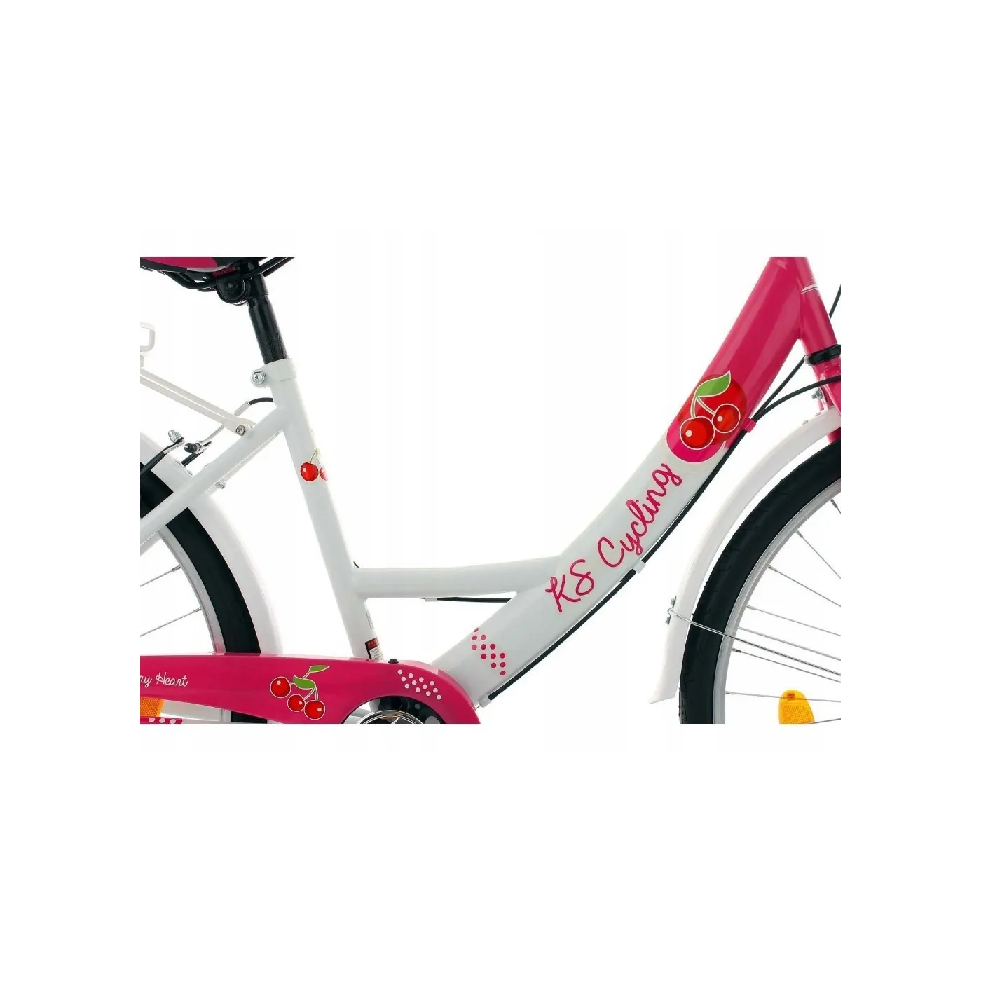 Rower miejski Cherry Heart to wyjątkowy model roweru dla dziewczynek. Jest on wyjątkowo ładny i oryginalny. Dostępny jest w kolorze biało-różowym z pięknymi aplikacjami w kształcie wisienek, dzięki czemu każda dziewczynka ucieszy się z takiego prezentu. Model ten został zaprojektowany tak, aby spełniać wymagania zarówno estetyczne jak i techniczne. Dlatego rower miejski Cherry Heart wyposażony jest w stalową ramę, wytrzymały stalowy bagażnik oraz 6 biegów marki Shimano.