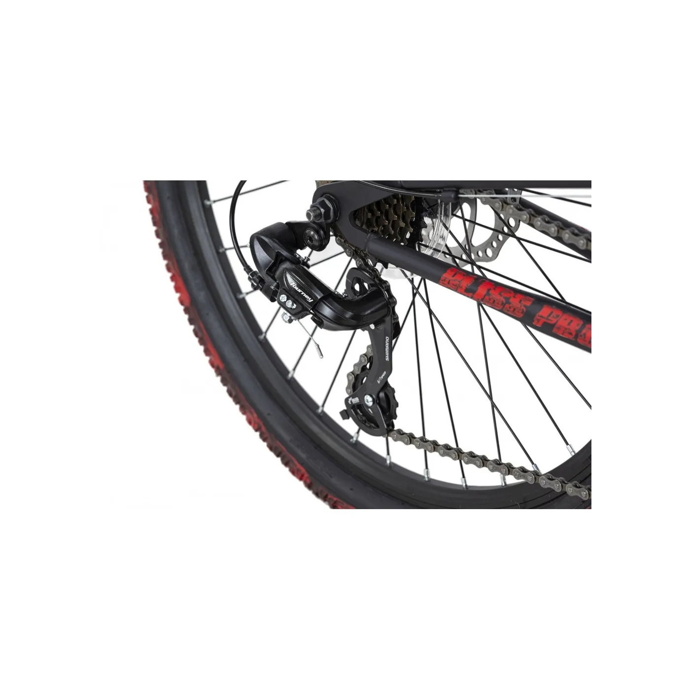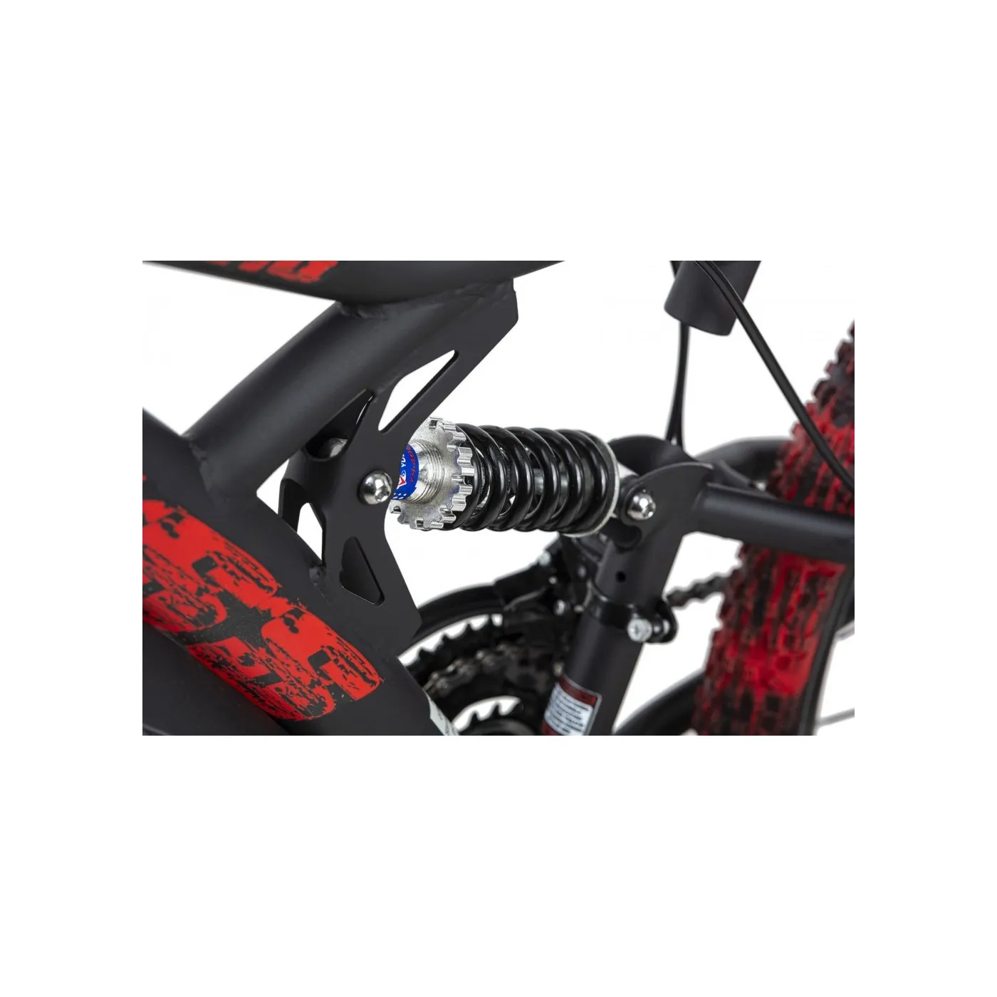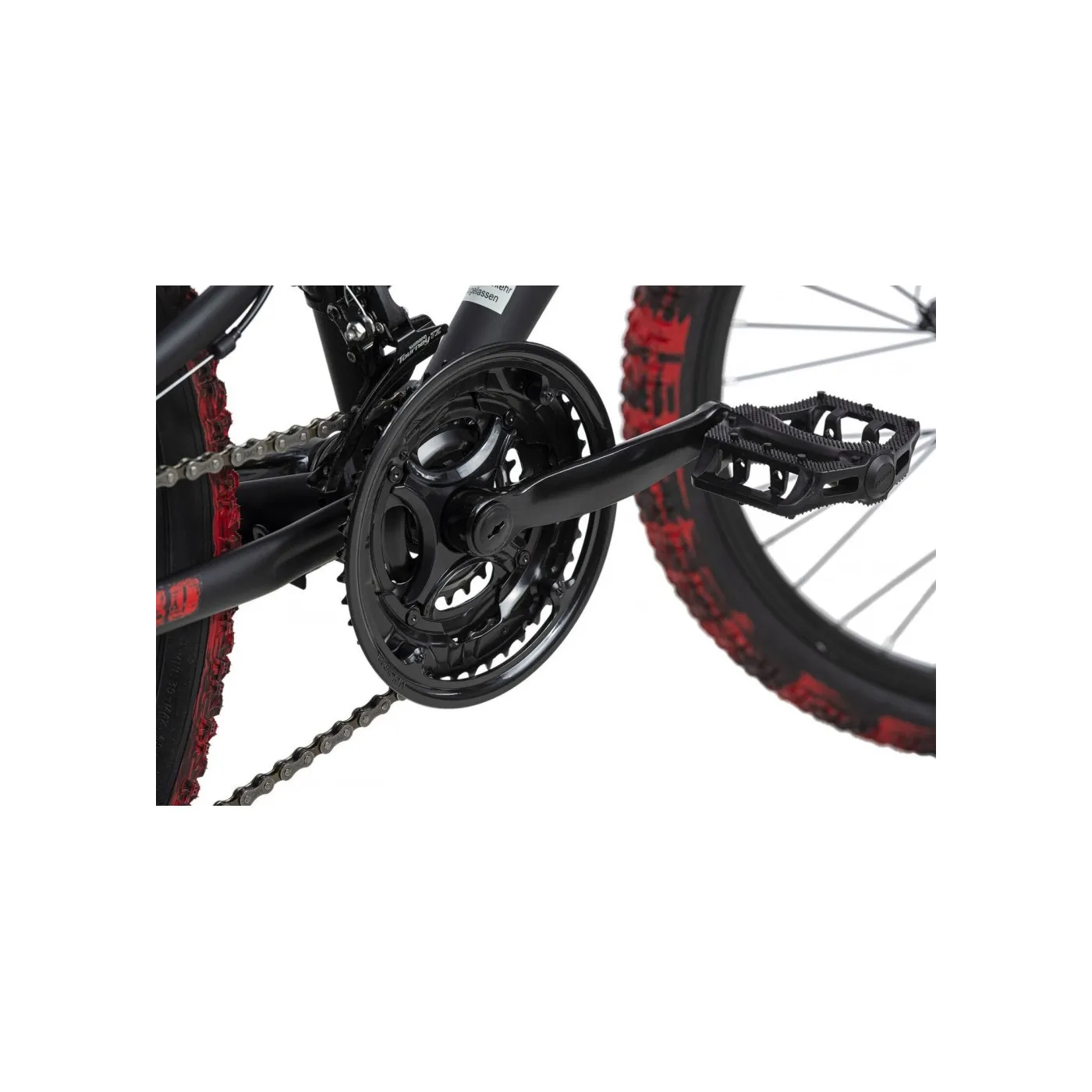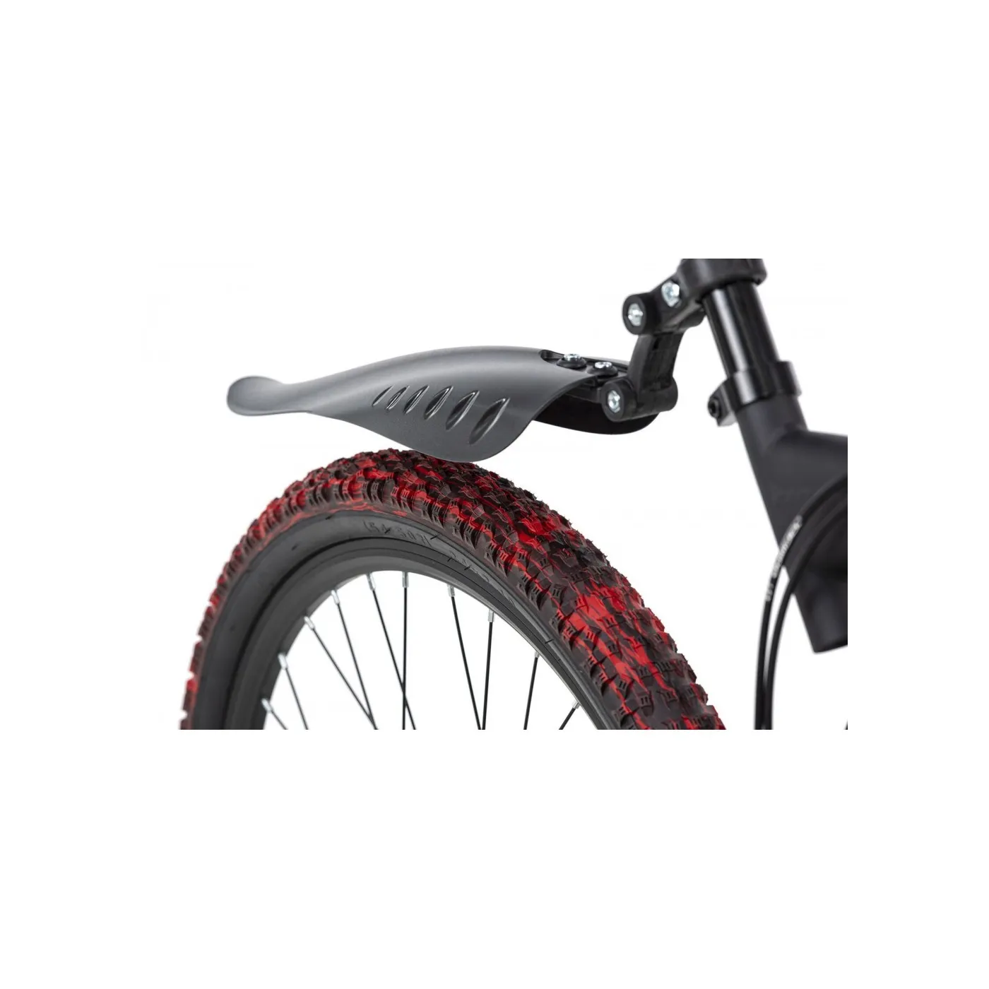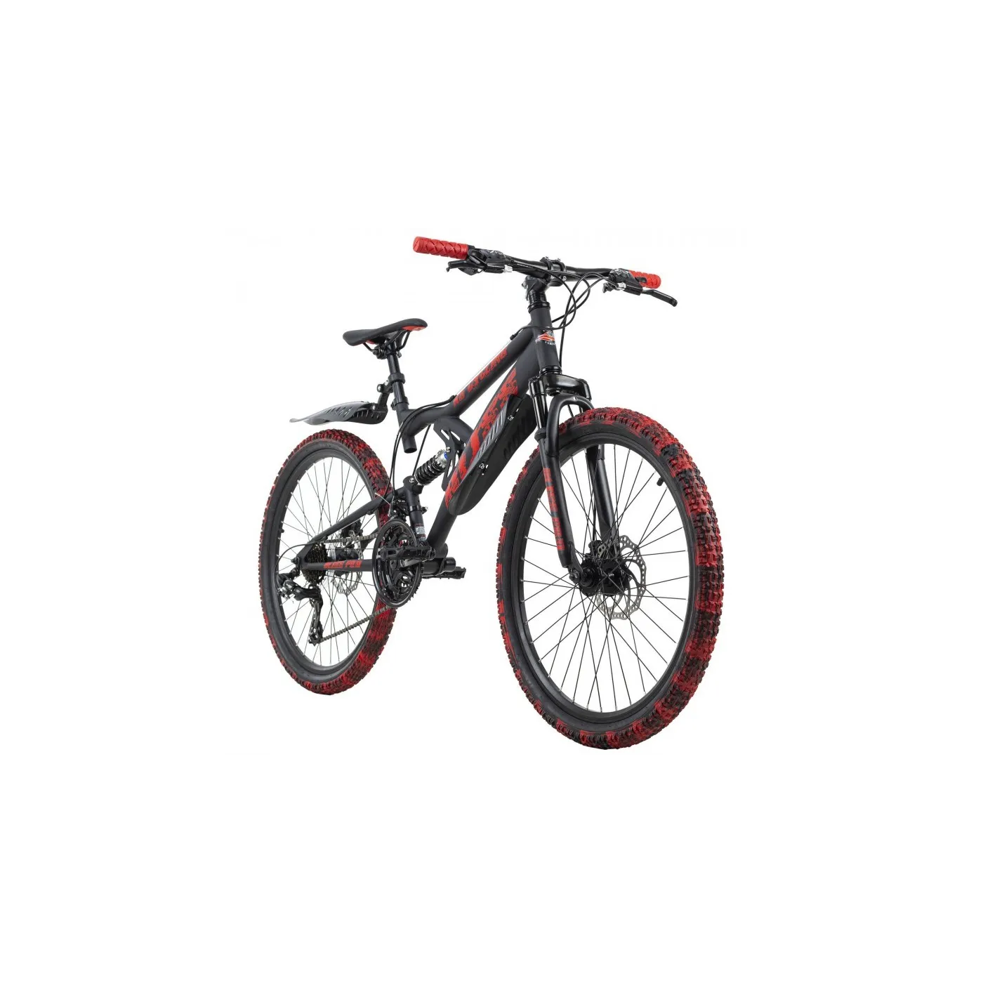 Rower BLISS firmy KS Cycling to solidny sprzęt, który wyglądem niczym nie odbiega od pełnowymiarowych górskich rowerów. Czarna rama z czerwonymi detalami jest z pewnością jego głównym wizualnym atutem.