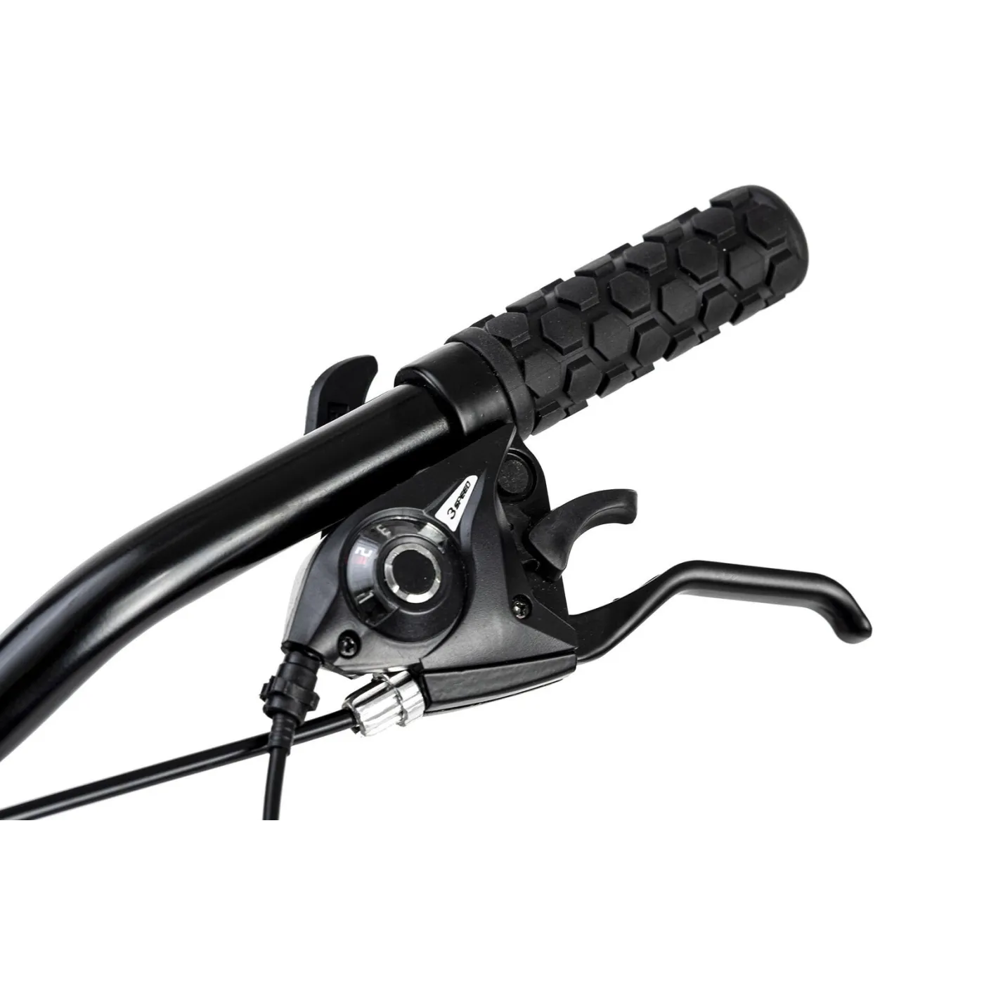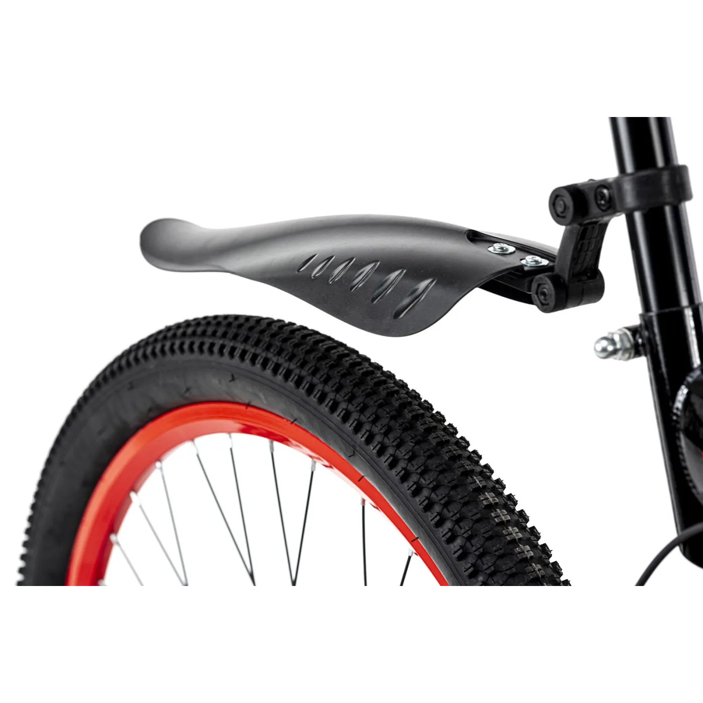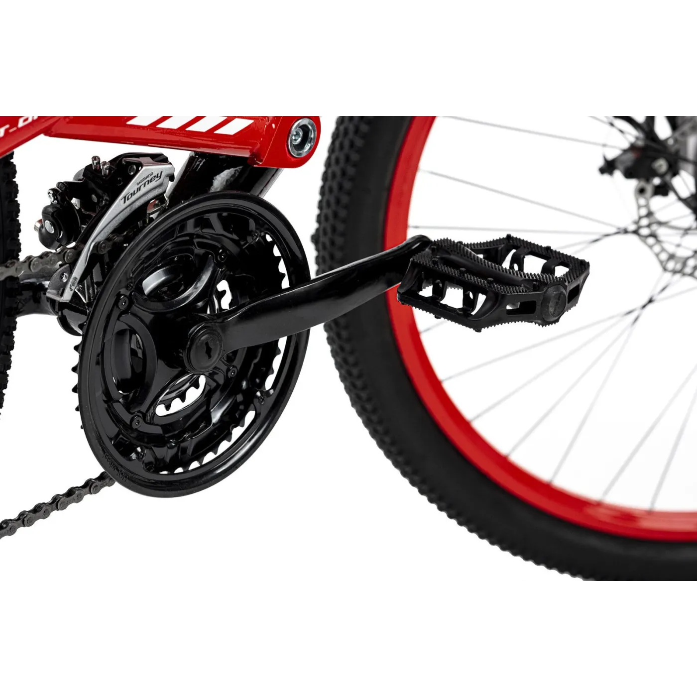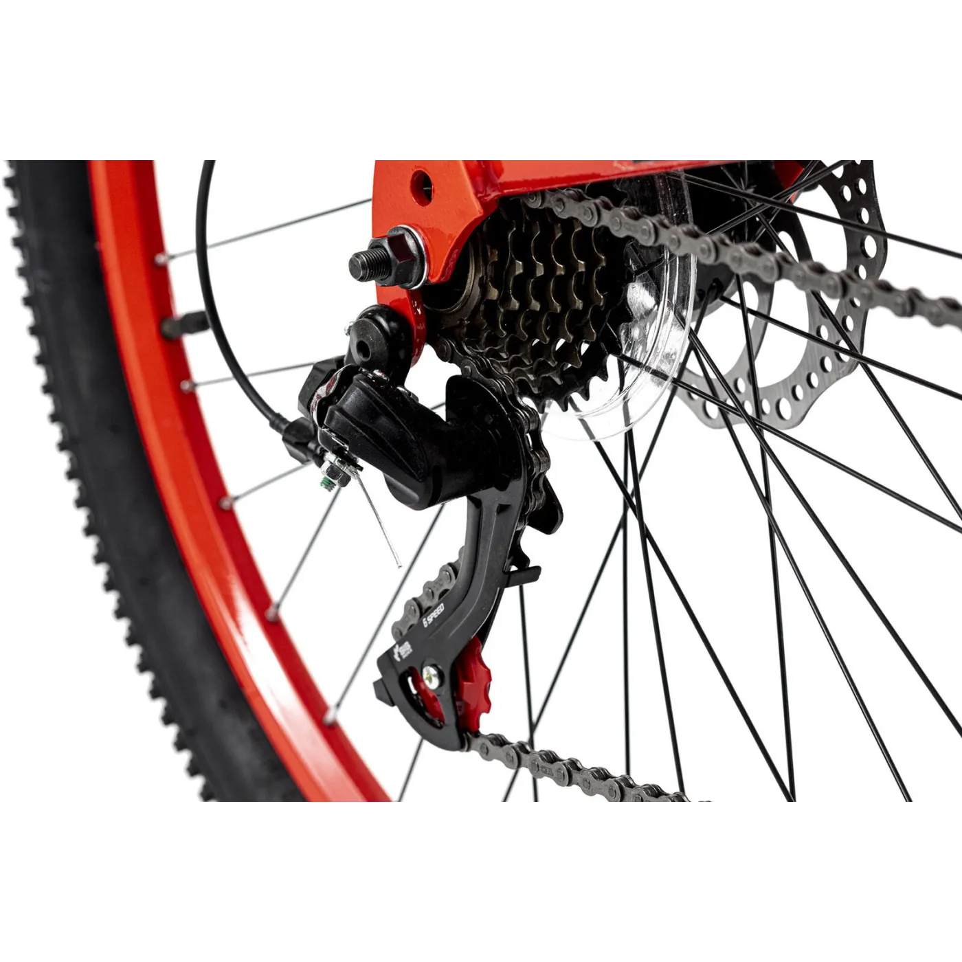 Solidne komponenty, tylne zawieszenie, amortyzowany widelec i mechaniczne hamulce tarczowe zapewniają komfort i bezpieczeństwo. Rower górski wyposażony jest w 21-biegową przerzutkę z manetkami Rapid Fire. To sprawia, że energiczna wędrówka po lesie jest świetną zabawą!