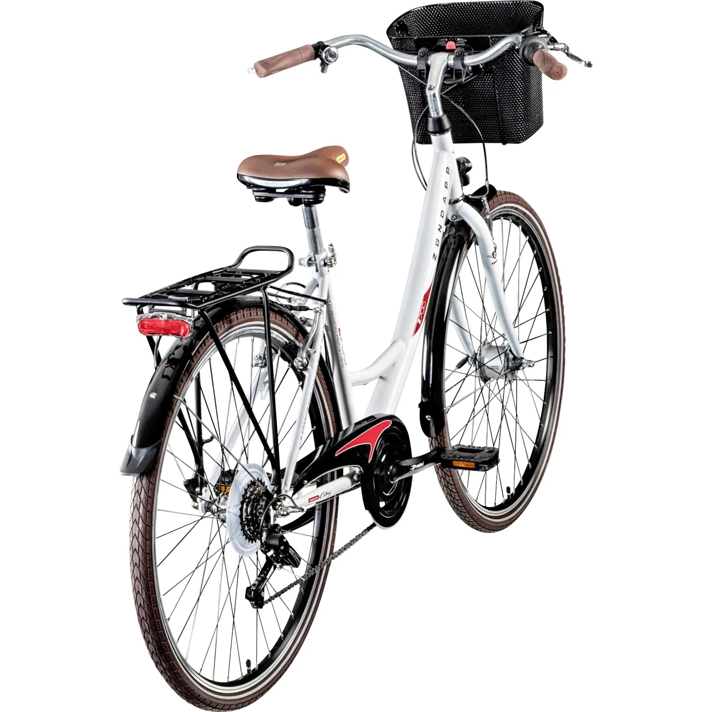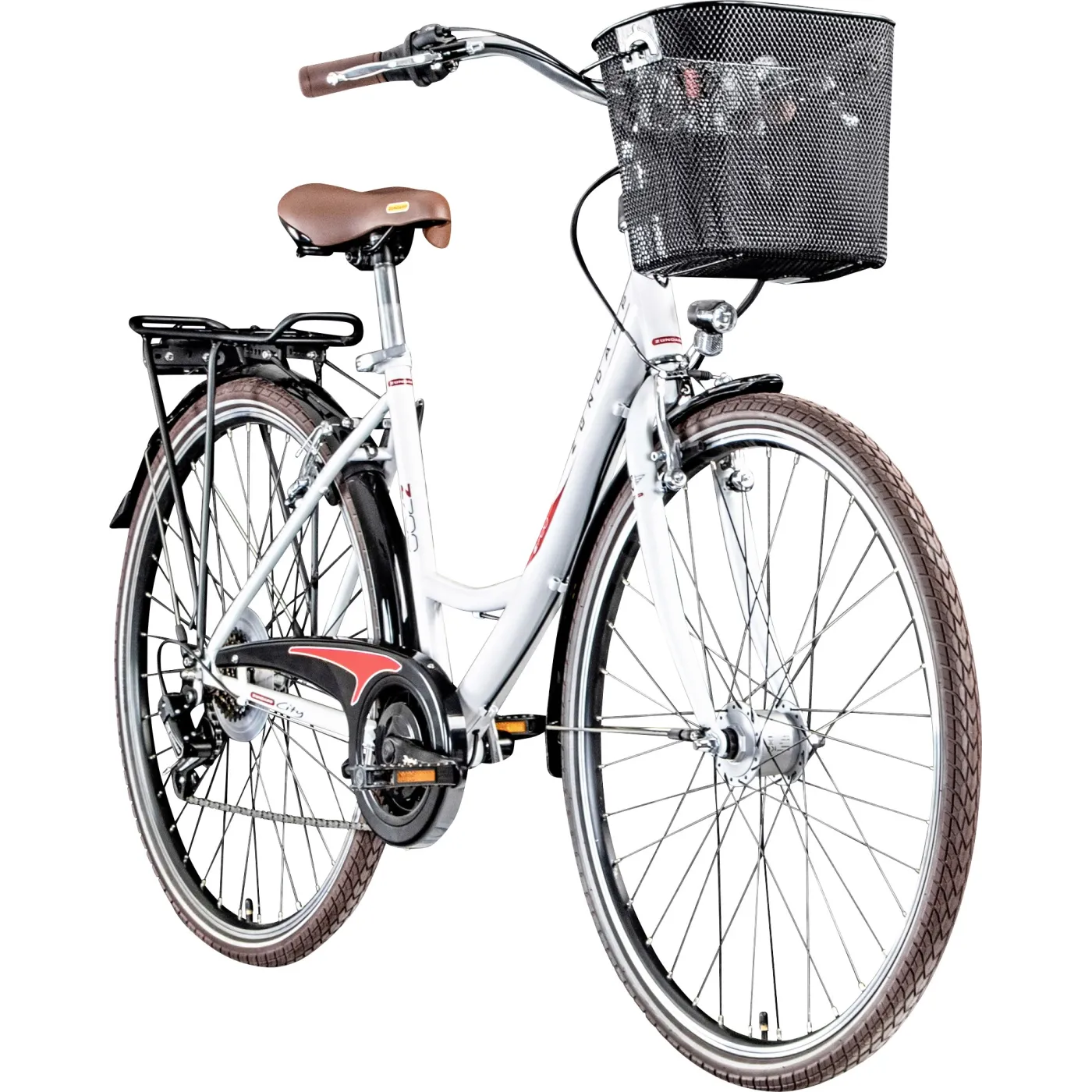 Błotniki chronią przed brudem drogowym, osłona łańcucha, bagażnik i przedni kosz zapewniają dużo miejsca do przechowywania, na przykład na zakupy. Kosz jest przymocowany do kierownicy za pomocą systemu zatrzaskowego i można go wyjąć w kilka sekund i łatwo zabrać ze sobą dzięki rączce.